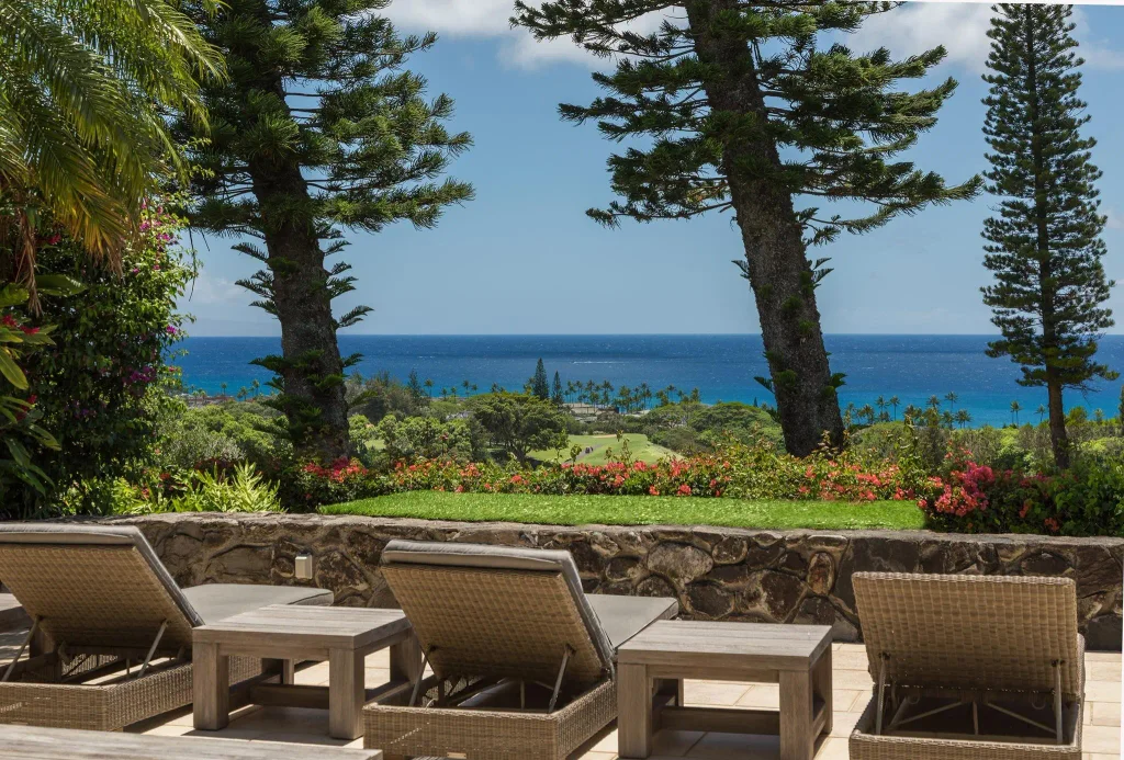 Golf Course fronting residence with 3 bedrooms and 3.5 bathrooms located directly on the fifth fairway of Kapalua's Bay Course, with beautiful views onto the course, as well as of the ocean. This spacious residence is centrally air conditioned with newly installed energy efficient and advanced air filtering systems, with a working fireplace, and a lovely swimming pool. The living area, kitchen, dining room, den/study and master suite are all located on the lower level. Two additional guest suites are located on the upper level with a loft living area. Offered furnished with few exclusions. Pineapple Hill amenities include owner pavilion with a community pool and tennis/pickle ball courts and BBQ area. Kapalua Resort amenities include fabulous beaches, world renowned surfing spots, two world class golf courses, The Bay & The Plantation, as well as tennis, hiking trails, luxury hotels and spa, fine dining restaurants and a resort shuttle.