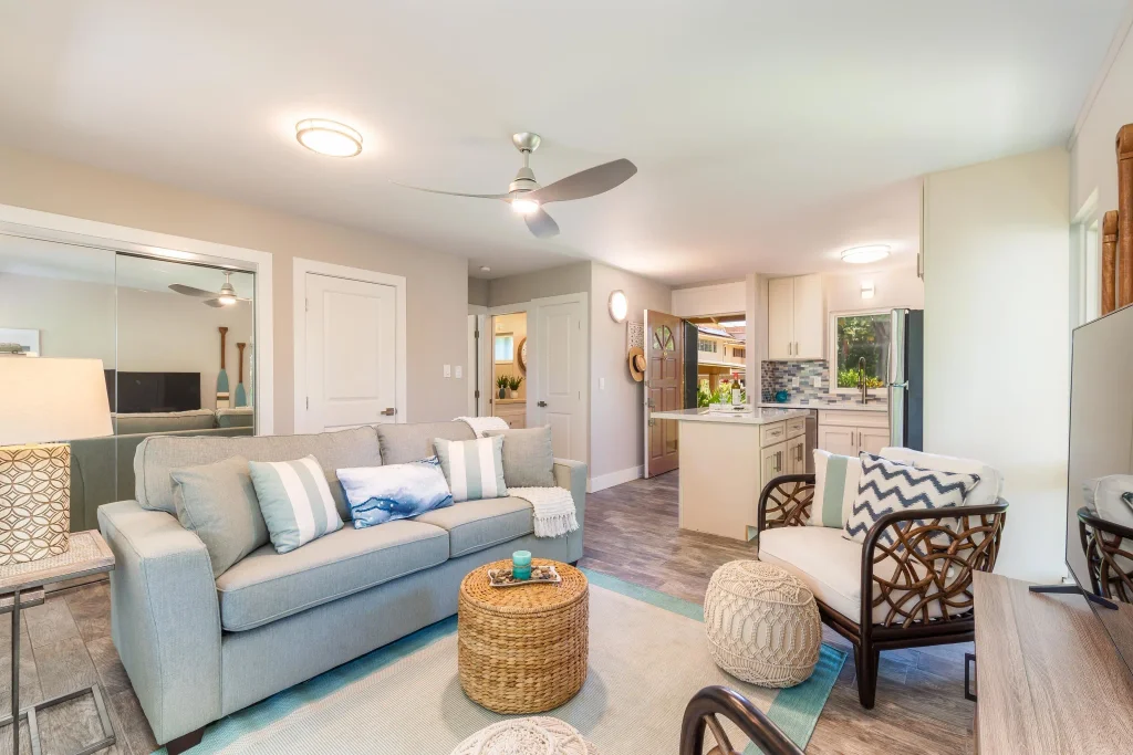 Step into the “No Ka Oi Hale” a beautiful newly renovated townhome in Maui’s hidden tropical oceanfront oasis; Puamana. Enjoy the best of Island style living. This completely renovated home is nestled at the end of a private cul-de-sac that opens to a spacious front yard greenbelt. Take a short stroll to the Puamana Clubhouse, enjoy nightly sunsets on the veranda and feel the ocean spray as you bask in the sun or splash in the oceanfront pool. Pick mangos from Puamana's two historic mango trees, listen to the trade winds rustle the palm, take pictures of beautiful tropical flowers, swim, stroll the beach or surf along its 1/4-mile shoreline. Back home relax on your spacious lanai, grill fresh caught fish, sip on a cocktail or read your favorite book! Reboot, recharge and rejuvenate, make your move today. This home is professionally staged and being sold fully furnished, move in today or start as a top quality vacation rental. Call today to schedule a showing.