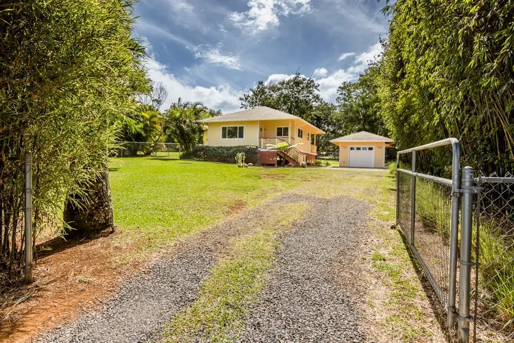 Experience easy country living on Maui's lush north shore! Ever dreamed of a quaint retreat at the end of a private country road? Here it is. This tropical Haiku gem consists of 2 bedrooms and 2 bathrooms with a detached garage, freshly painted inside and out. It is situated on over 16,000 sq ft surrounded by beautiful trees and a bamboo privacy wall. You can enjoy planning a fruit orchard and growing your own food. Built in 2012 with lots of love this home features 9ft ceilings, custom mahogany kitchen and bathroom cabinets with granite countertops, and a gorgeous solid mahogany breakfast bar. Solid frame and panel bedroom and bathroom doors, mirrored closet doors and custom built-in closet interiors round out the attention to detail. The covered back lanai and private fenced yard with koa and pheasant wood trees complete this well thought out home. It is conveniently located near Makawao, Paia, the Haiku and Pauwela cannery malls as well as Hookipa and Peahi (Jaws), Maui’s world class surfing destinations. This is a Residential CPR, Home is virtually staged.