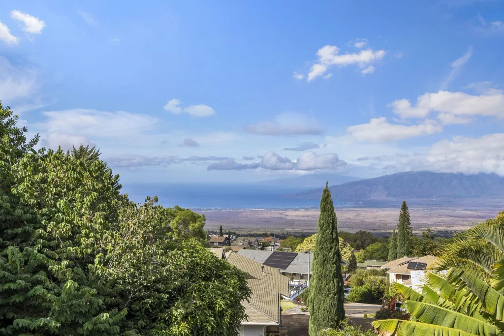 Stunning ocean and outer island views from this custom, single level Kula home. Open concept floor plan with vaulted ceilings, 3 bedrooms, 2 bathrooms, and a spacious partially covered large lanai -Perfect for family meals or entertaining. Renovations in 2016 include a beautifully remodeled kitchen with custom cabinets, granite counters, all new appliances, lighting and fixtures. Bamboo flooring throughout, new interior doors, new sliders in living room and master bedroom, propane fireplace and split AC in great room. The spacious master bedroom features a large bathroom with new soaking tub and separate shower, both offer stunning views! The master also has a walk-in-closet and access to the covered lanai. In addition to the 2 guest bedrooms there is a finished attic area which makes a perfect office, playroom or den. Fully fenced and gated for privacy and safety, this 13,231 sq ft lot has beautiful mature landscape and a variety of fruit trees including avocado, banana, mango, guava, lemon, lime, sour orange and tangerine. Attached, large 2 car garage with an abundance of storage.