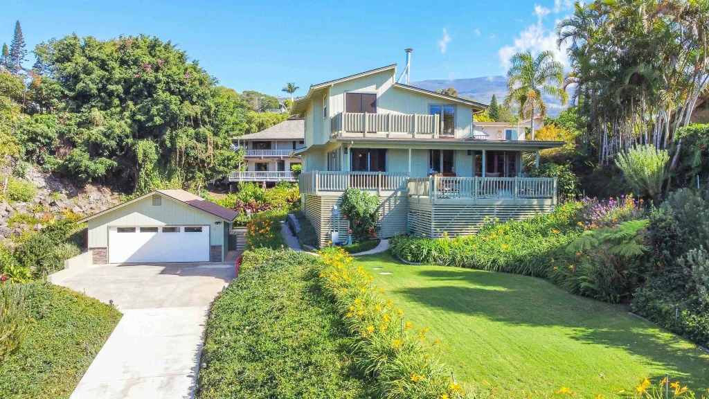 Here it is… a Kula Kai Neighborhood Stunner! This home has 4 bedrooms and 3 bathrooms plus an office and is located in scenic Upcountry Kula… a must see. As soon as you enter the driveway you will be amazed at the love and attention that has been poured into this charming home. Recent years of upgrades include new windows, blinds, crown molding, lighting, carpet, bathroom remodels, solar hot water (owned), propane range and dryer, tiger wood hardwood floors, exterior paint and a cozy fire pit just to name a few. Two large decks boast an ocean, valley and mountain view. The vaulted ceiling in the living room provides a feeling of spaciousness. The lush landscape is impeccable and includes Protea, Daylilies, Blue Jade, Hibiscus, Plumeria, Citrus trees and Tea Plants. The landscape comes complete with a drip system and sprinklers which are automated with timers. There is also a detached over sized two car garage with an office and work space. This incredible home is close to private and public schools, golf, shopping and restaurants. Call your favorite Realtor today to set up a private showing.