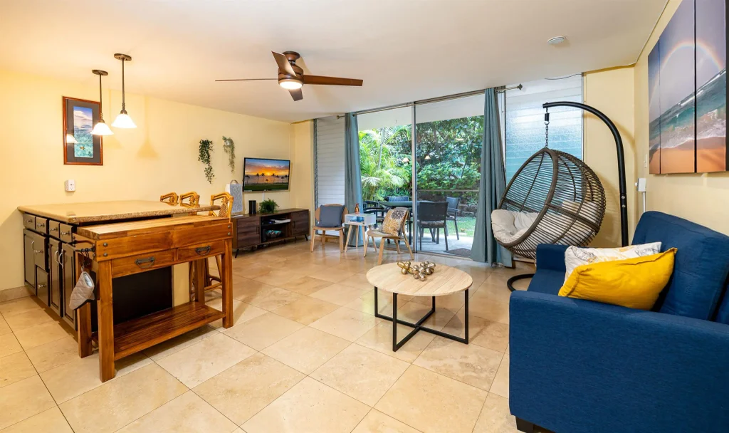 Turnkey and ready to go! This fresh ground floor condo is 1 bedroom 1 bath with 621 sq. ft. of interior living area. Ideally Located directly across from the pool yet offers a peaceful and quiet oasis. Upgrades include travertine tile, granite countertops, renovated bathroom, new in unit washer/dryer. Enjoy all new furniture with a modern casual feel. Kihei Kai Nani is one of the best locations in Kihei. Located just across the street from the clear waters of Kamaole Beach park 2. With just a short walk you will find some of Kihei’s best shopping, dining. Currently being used as a vacation rental, buyer to honor all future bookings.