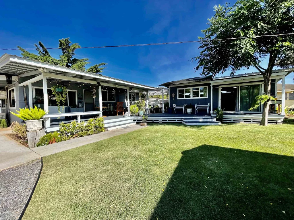 Beautifully maintained and updated property close to town with two separate 3Bed/1Ba homes, studio and laundry. All structures have been skillfully integrated to maximize the over 1/4 acre parcel. The spacious lanai shaded by a lovely pergola is perfect for entertaining family & friends. Nicely landscaped with a courtyard, gravel driveway and fully fenced for privacy. The 2 homes are seperately metered for water. Potential income opportunity. Furnishings negotiable upon offer.