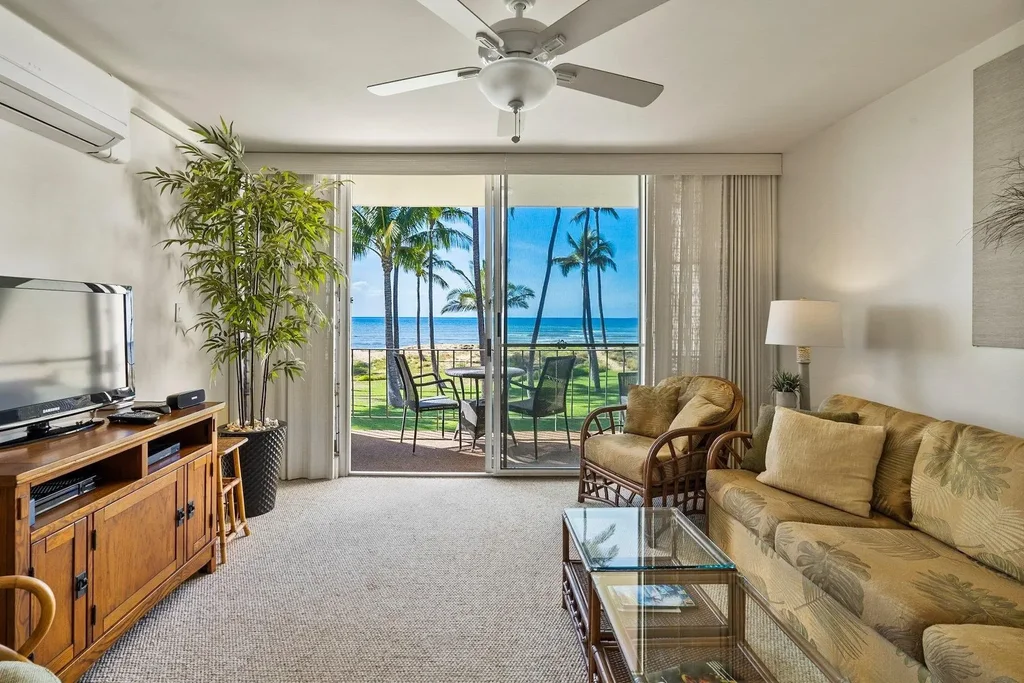 Rare opportunity to own in one of the most sought-after beachfront properties in South Maui. Hale Kai O Kihei has long been a favorite by savvy visitors and locals due to its ideal location in the midst of everything Kihei has to offer yet seemingly a world away. Beachfront location yet walking distance to shops, restaurants, supermarket, and much more. With unobstructed ocean view corridors, it is the ideal property from which to enjoy year round picture-perfect sunsets, seasonal whale watching and much more. With split air conditioning, in-unit washer/dryer, a fully-stocked kitchen, and more, owners and guests enjoy the comforts of modern living. Beachfront location is conducive to partaking in a plethora of water activities or revel in a the quiet, friendly beach. As a popular vacation rental, it grossed $97K in 2022. Contact your favorite Realtor for more information, it will not last.
