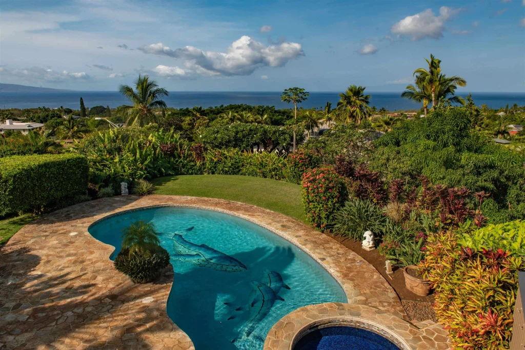 HANA IN THE MEADOWS is single level living at it's finest. Enjoy the hues of the lush mature landscaping resembling the beauty of Hana, the unobstructed & panoramic ocean & outer island 180d ocean views all situated at the end of an extremely private double cul-de-sac in Maui Meadows directly above the Wailea Resort! The sunrise views are also amazing! One of the very few properties with underground electric lines! The beautifully renovated home with heated pool, spa, covered ocean view lanai and two car garage is meticulously maintained! You will love the real Brazilian Cherry hardwood flooring, the imperial plaster interior walls, the high vaulted ceilings and automatic suns shades. The third guest bedroom/media room is downstairs. This is not a drive by since the home cannot be seen from the road nor can the road be seen when enjoying the property!! An Extremely Private .61 Acre Estate!