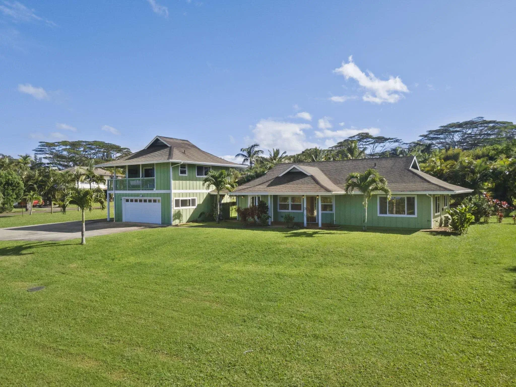 Perfect Peahi getaway on Maui's inspiring North Shore. Come experience this impeccably maintained home built in 2000 and a separate "farm office" situated on 2 gated, fenced and manicured acres. The Haiku East subdivision is located minutes to the world famous Jaws surf break, less than 10 minutes to Haiku Town, Ho`okipa Beach Park and near other North Shore amenities. The move-in ready, remodeled 1,142 sq. ft. single story plantation style home features a nice open great room with vaulted ceilings, wood-look ceramic tile floors, built-in shelves and a split A/C system. There is a spacious master bedroom with a walk-in closet. The 432 sq. ft. farm office/studio sits above the immaculate 2-car garage and provides a plethora of options for remote work, exercise, art, etc. The two fully fenced, mowed pastures on either side of the home allows for plenty of room to expand. Call your Realtor for a private showing of this beautiful property today!