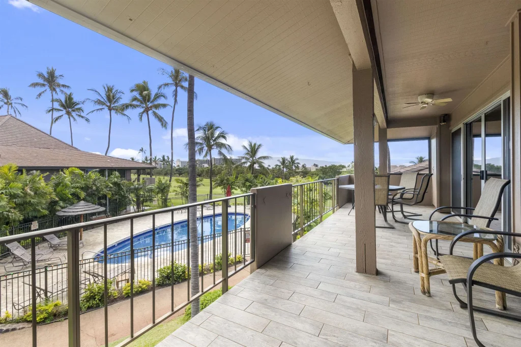 This spacious 960 sq. ft. 1 bedroom, 1 bath vacation rental or second home condominium is in the highly popular beachfront property of Maui Eldorado, right on the golf course in world class Kaanapali resort. With exclusive access to a private beach cabana on North Kaanapali Beach, this leasehold condominium features an extra large 240sf lanai with a nice sunset and oceanview; concrete construction for your quiet enjoyment; low density; central air-conditioning; 3 separate pools; gym; concierge at the front desk; 24 hr. security; beautifully maintained, tropical landscaping; and convenient shopping and restaurants right across the street in the Fairway Shops, or a short stroll to the high end shops and dining at Whaler's Village. Perfect for your remodeling imagination or left in it's well maintained condition and priced to sell quickly, so call your favorite agent soon for details on this great opportunity!