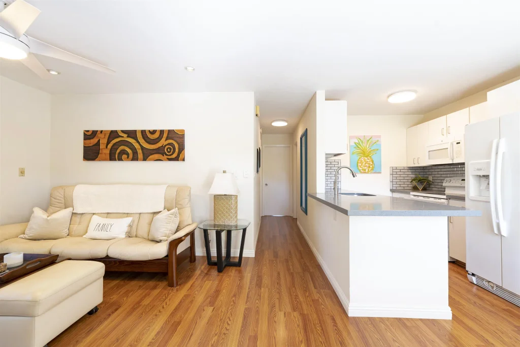 If you're looking for a remodeled 2 bedroom, 1.5 bathrooms, ground floor condo that is ready to move in with furnishings included, then look no further. This Kihei Villages condo was remodeled in 2019, the kitchen and bathrooms have all wood cabinetry with quartz countertops, tiled kitchen backsplash, floor to ceiling tiled walk in shower, and to maximize space a barn door closure from the primary suite to the half bathroom was installed, there is a full size washer & dryer and 3 new split ac units to keep you cool. Enjoy the private tranquil oasis lanai with your favorite beverage. Who doesn't need extra storage? There is enclosed storage on the lanai. This condo complex is pet friendly and comes with 2 parking stalls. Kihei Villages is located just in the beginning of Kihei close to beaches, stores and restaurants. Easy to show!