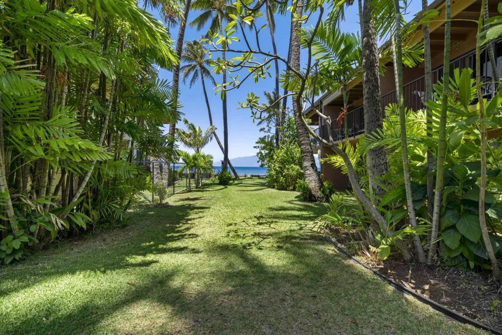Don't miss this amazing opportunity to own a piece of paradise at Maui Sands Seaside in Honokowai. This charming oceanfront complex allows both short term and long term vacation rentals. Located on the ground floor, this unit is a well maintained 1 bedroom 1 bath and boasts a clean and open layout. The kitchen features a beautiful tiled backsplash and comes with all your major appliances. It also includes an island in the kitchen providing more counter space and bar style seating. There is tiled flooring throughout the unit as well as a full size tiled shower in the bathroom. A new memory foam mattress was recently added and there are ceiling fans in the bedroom and the living room as well as portable AC units added for your comfort on those warmer days. Enjoy your favorite beverage on your covered lanai with the well manicured tropical greenery leading you straight to the ocean. Spectacular views of the neighboring islands, whales and dolphins in the winter months and sunsets that take your breath away are just some of Maui's delightful treasures. You will truly appreciate the location as there are many local eateries, shopping, grocery stores, and numerous beaches to explore. This leasehold property could be your little retreat! Call your favorite realtor TODAY to schedule a showing.
