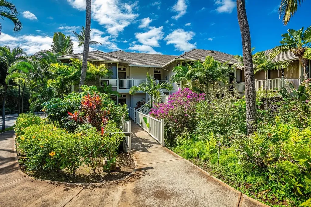 Grand Champions #51 is a 1056 s.f., 2 bd/2 ba, ground floor end-unit without a single stair step from its dedicated parking spot to the front door! You approach along a lushly landscaped pathway adorned with Ti-leaf, hibiscus, yellow allamanda and tropical palms. Upon entering, the remodeled kitchen on your right flows seamlessly into the dining and living area. The ‘Sandy Beaches’ granite kitchen counters match the full-height backsplash and complement the lovely cherry-wood cabinetry. Sliding glass walls retract and integrate the spacious living room with the 125 s.f. ocean view lanai. In Wailea, it is rare to find oneself in such a lush tropical oasis while enjoying a truly lovely ocean view! The primary bedroom with en-suite bath is light-filled and spacious and features granite counters, cherry cabinets and a spa-sized walk-in dual-head shower and large walk-in closet. The guest bedroom & en-suite bath, with shower and tub, is notably spacious and enjoys abundant light! The split-system air conditioning individually services the central living area and both bedrooms. Grand Champions features two lushly landscaped pool areas and a fabulous waterfall at its entrance. A superb location, surrounded by the Wailea Blue Course, Grand Champions is close to Matteo’s Osteria, Wailea Wine & Spirits and the elegant Shops at Wailea. The Wailea Tennis & Pickleball Center is next door and there are three world-class golf courses within a three-minute drive! Wailea Living is Wonderful.