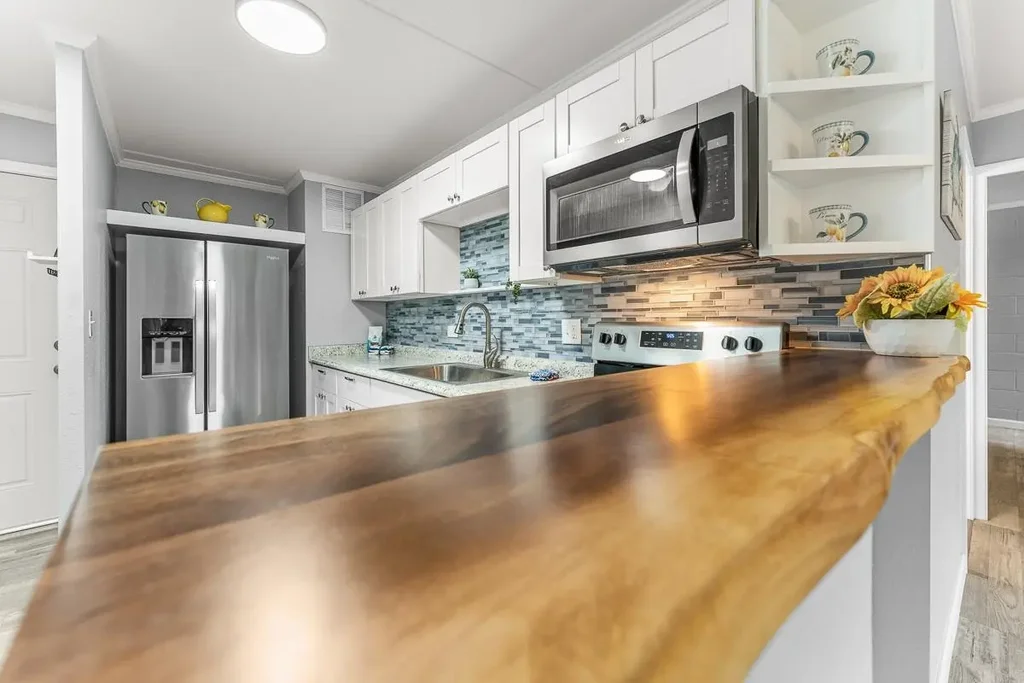 Unwind in style with this stunning 2 bedroom 1.5 bathroom condo on the ground floor of Harbor Lights. Luxuriously gut renovated from the inside out, this property boasts a sleek and modern design. From the moment you walk in, you will be impressed with the beautiful Lifeproof vinyl faux flooring that runs throughout the unit along with crown molding that kisses the freshly painted walls and ceiling. The large new vinyl windows allow for an abundance of natural light to flow in, highlighting the attention to detail in every upgrade of this condo. Cook up a storm on the butcher block bar countertops and store your ingredients in the white soft-close cabinets. Prepare meals with ease on the all new, not yet used, appliances and enjoy them at the breakfast bar or in the spacious living room area. Enjoy a spa-like experience in the tiled walk-in shower equipped with smart technology, including Bluetooth enabled speakers that double as a bathroom vent and night light. The complex offers a playground, basketball court, and a private pool surrounded by colorful gardens and a tranquil koi pond. From here, you're just moments away from the harbor and near some of the most popular local surf spots, as well as medical facilities, schools, and delicious restaurants. Book a tour with your favorite Realtor today and discover the lifestyle in coastal living.