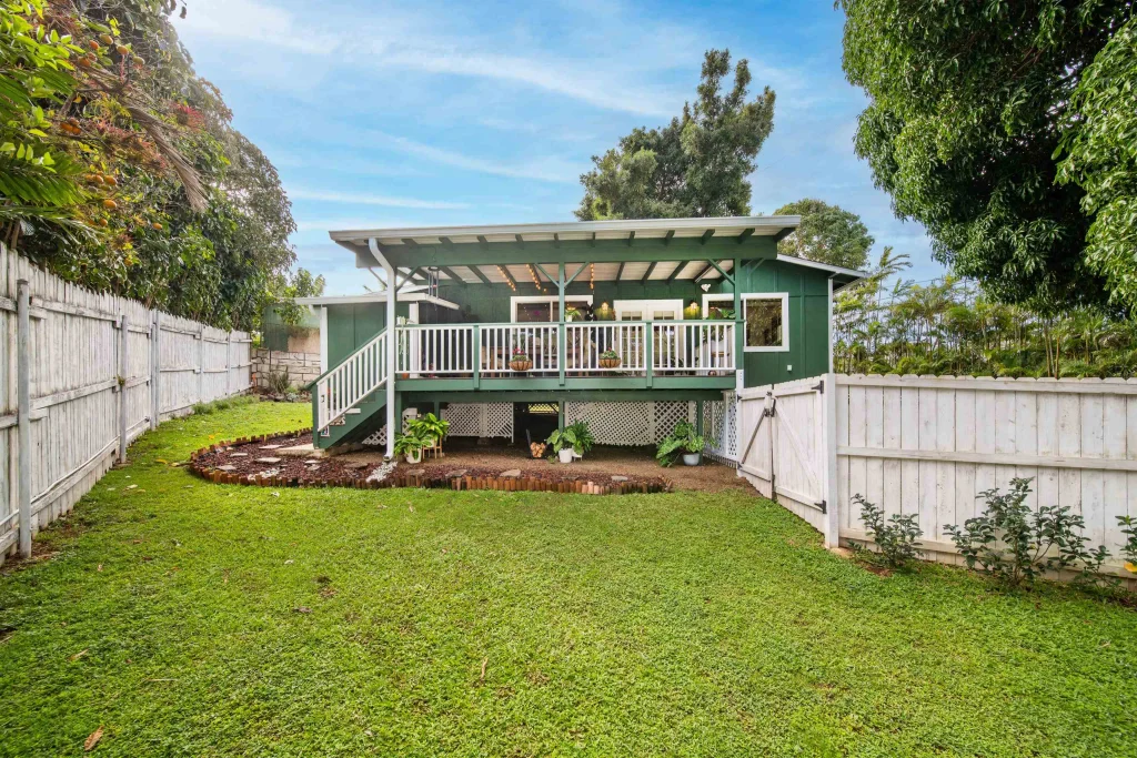 Haiku Charmer. This 1920’s plantation home has been completely renovated, top to bottom in 2020. This home offers 1,116sq.ft. of interior living space, with 2 bedroom, 2 bathrooms plus an office/flex space. Solid Pine floors, mango wood counter and shelves are just a few unique finishes of this home. High ceilings with large wood beams provide a bright and airy feeling. French doors open out to a large, covered patio finished with trex composite decking. A spacious yet manageable yard allows you to put your green thumb to the test. Conveniently located steps from the Pauwela Cannery, featuring restaurants, shopping and more.