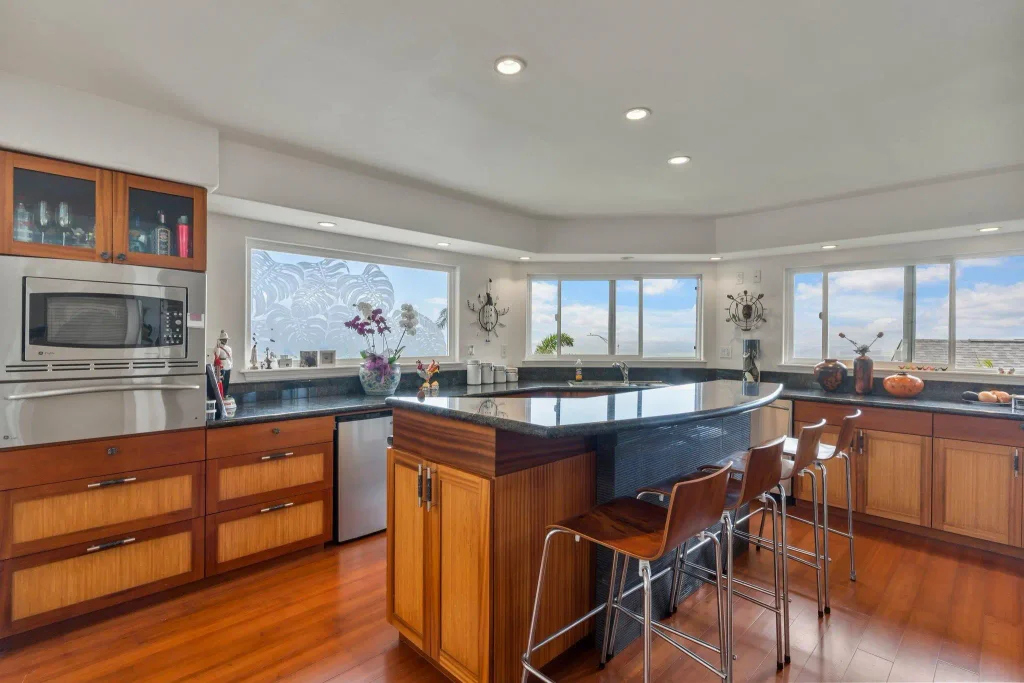 This well maintained 3 bedroom 2.5 bath home is located at the top of Wailuku Heights. Custom built in 2004 to take advantage of the ocean and mountain views, as well as, the private feeling being tucked away in the forest. High ceilings and lots of natural light as you enter the home and the upstairs primary bedroom has sweeping views of N Shore and an additional loft space for a home office or whatever you chooose. This area also has a lanai that faces the lush trees. The home also has 3 split air conditioning units with Photovoltaic system for low electrice bills. The low maintenance back yard backs up to a reserve so you get the best of both worlds. The location of the home is perfect for island living with it's location to Central Maui and ease to get anywhere else on the island as well.
