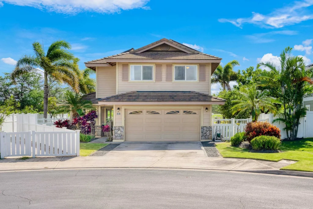 Spectacular mountain views from this meticulously cared for Maui Lani Legends home – enjoy sunrise over Haleakala and sunset hues over the West Maui Mountains. Bright open floor plan, fully fenced yard, and Monier tile roof. This original-owner, 2-story, 3 bedroom and 2.5 bath home features a 2-car garage, 18 owned solar panels, central AC, a water softener system for the whole house and a Reverse Osmosis water system in the kitchen. Other bonus features include screen “curtains” on the lanai, a pet door, 8mm security film on all the windows and an open space corridor behind the property. Conveniently located near schools, shopping, hospital, medical offices and all the amenities of Central Maui.