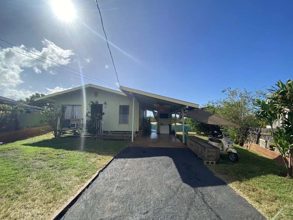 3 bedroom 1 bath home located in a cul-de-sac with ocean views. Enjoy the fruiting trees, landscaping, and outdoors with privacy fence. Spacious outdoor storage, hook up for washer and dryer in carport. The master and guest bedrooms have ocean views. Newer cabinets in kitchen and laminate flooring throughout. Open living and dining area with AC. Ready for you to make it our own.