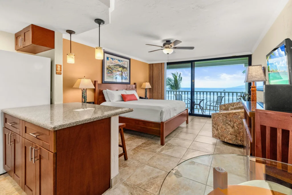 A true Front Street gem! This oceanfront, ocean-facing studio resort condo is beautifully upgraded and has the most beautiful panoramic ocean view! This condo is sold fully furnished and turnkey, and is in a very active rental program with Destination Hotels. Whether you want to relax on the lanai and watch the whales and turtles play, or walk Front Street to enjoy dining and shopping, this condo and its location will please any owner or guest at any time of the year! Amenities include an inground pool and hot tub with outdoor lounging areas, a comfortable setting in the lobby to relax nearby the pool, concierge services, as well as a fantastic sandy beach to enjoy without ever leaving the resort! Lahaina Shores also has additional storage outside available for kayaks or surfboards. If you have an appetite for all that Maui and Front Street have to offer, and you'd like to own your own piece of paradise, don't let this awesome condo pass you by! Call your favorite Realtor for a showing before it's sold!