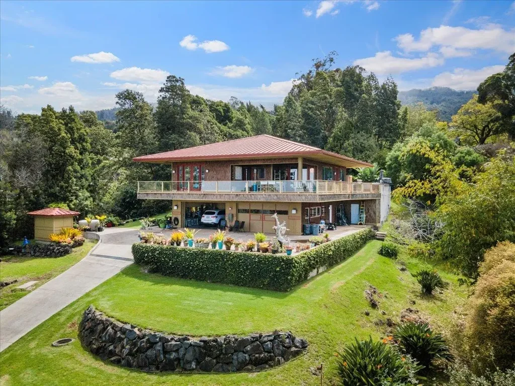 Beautifully crafted home in Upper Kula with ocean and mountain views. This property is full of character, from the garden terraces to the 1,300 sqft covered lanai and artistic furnishings, you'll find thoughtful design and conscious craftsmanship. Built with careful attention to detail, this home exudes character and features a spacious kitchen, sprawling living room, and luxurious sauna, hot tub, and outdoor shower for ultimate relaxation. On the main level you will find a sprawling kitchen and living room that lead out to the massive covered lanai/entertainment space. 303 Alae Road is located above Kula Country Farms, close enough to Kula Highway to be convenient but tucked away enough to be serene and peaceful. The lower level features 1,764 sqft of garage. The home is set up with photovoltaic solar to assist with energy costs. The is also a 540 sqft ag storage building on the property.