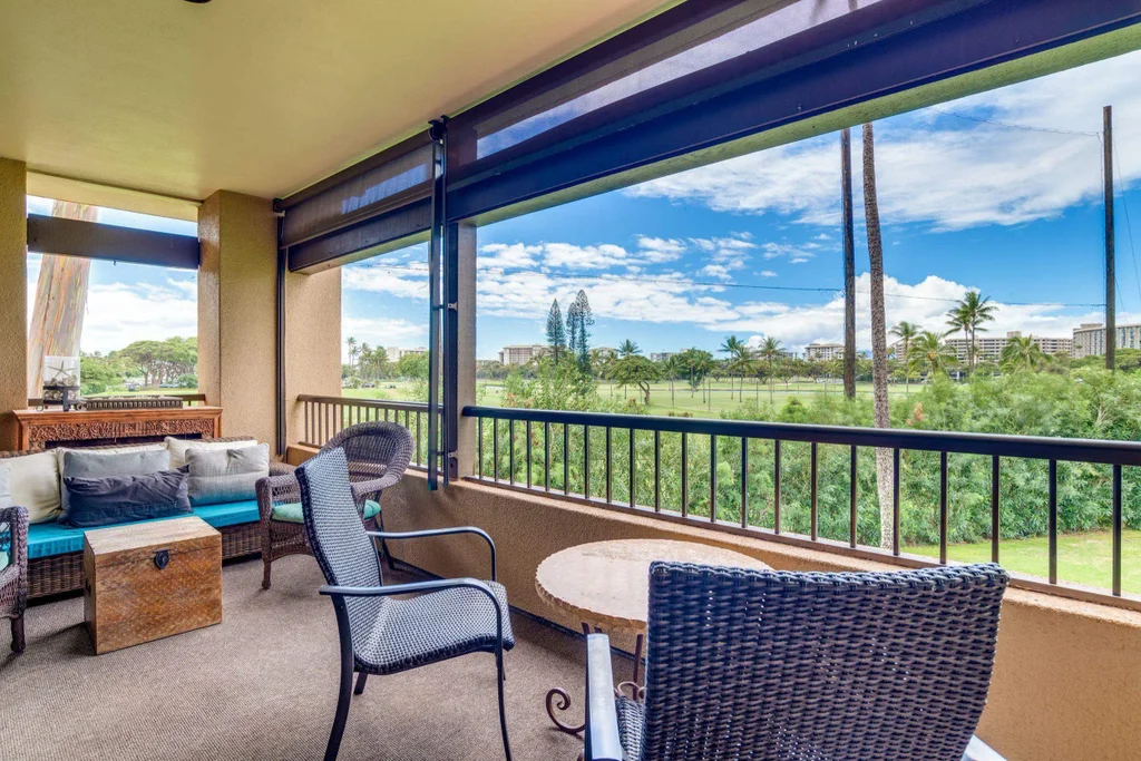 One of the few units that have no stairs to entrance from parking area. This condo was extensively remodeled in January of 2014. Granite and travertine countertops, stone and wood flooring throughout with all new appliances. Walk in showers in master and guest bathroom both ensuite. Kaanapali Royal A-201 enjoys a wonderful corner location on the south side of the community closest to the tennis courts. The spacious floor plan expands to sweeping golf course views and features a sunken living room with private suites on each side of the living area. The kitchen opens to the living and dining area offering ample counter space, extra storage and golf course and Whalers Village views. Solid concrete construction throughout provides the ultimate in privacy, peace and quiet. There is also a bonus exterior storage room just off the entrance large enough to hold paddle boards, golf clubs - all the toys! With its great central Kaanapali location, gated entrance, solid concrete construction, spacious floor plans, extra storage, open golf course views, lighted tennis courts, pool, jacuzzi, and short term rental ability the Kaanapali Royal offers a wonderful home to enjoy for a week, several months or as your full time residence.
