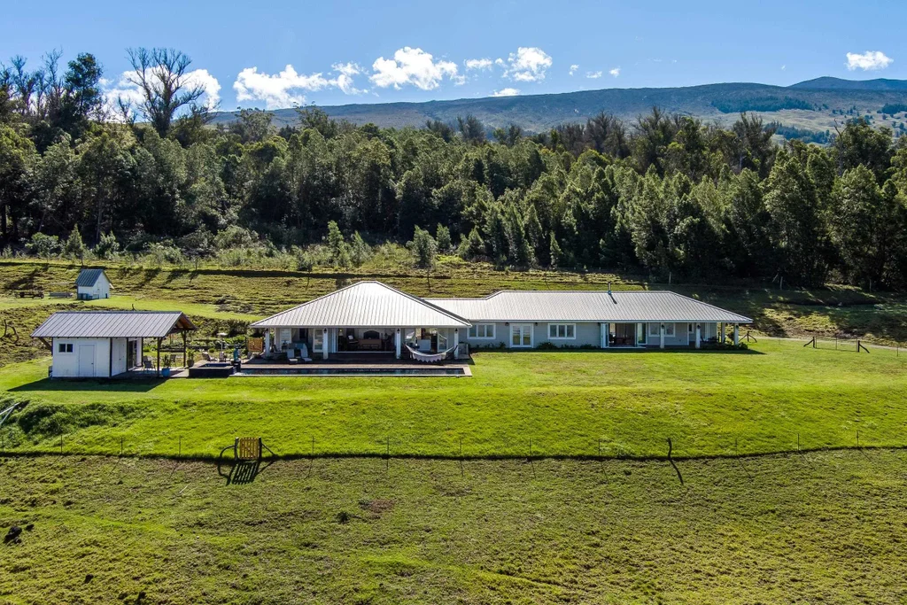 Hapapa Road affords privacy and classic Upcounty views supported by a background of ocean and neighbor islands. Also included are green pastures and superb sunsets in an oasis of self sufficiency that provides food, water, power and shelter. The property is bordered on two sides by thousands of acres of ranchland.The grounds are fenced and the land produces a cornucopia of agricultural products: apples, lemons, limes, oranges, tangerines, plums, pears, figs, macadamia nuts, almonds, star fruit, honey, lamb, eggs, grapes, strawberries, blueberries, artichokes, lilikoi, ornamentals and more. Please view the Ag document link. Eight foot mahogany double doors comprise the main entry with a matching single door providing a second entrance. The home was designed with two ensuite primary bedrooms at opposite ends of the house, separated by the garage and joined by the library. There are folding retractable doors in both living areas offering full panoramic views across the entire length of the home. The primary bedrooms each offer a private lanai and bathroom slate underfloor radiant heating. Engineered Oak hardwood floors are present in the other rooms. Imported Italian cabinets are in the kitchen, living room, bathrooms and garage. Appliances: Subzero refrigerator, Bosch dishwasher and DCS eight burner stove with double oven. Carrera marble countertops. A fireplace and wood stove provide both function and aesthetic. The 63' heated lap pool with hot tub compliments the view and makes for convenient low impact exercise. The barn/workshop includes a covered outdoor work space and/or additional parking. The four car oversized garage has copious cabinetry for organized storage. An unlined pond, roughly 9,000 sq ft and up to 8 feet in depth, fills during seasonal rains. A small boat is present for intermittent aquatic recreation. The neighborhood Malukaohu Water Association connects to the County system. The home also has its own 44,000 gallon private water catchment storage. While electrical and cable service are located at the property boundary, the owners desired uncompromised off grid living. Star Link high speed internet and television is installed and transferable. Heavy duty construction includes Andersen double pane windows, three hurricane clips on each truss and 2X6s (not 2X4s) within the walls. The lower adjoining property boundary has been landscaped with fast growing podocarpus trees which will preserve the view corridor while securing visual privacy from the neighboring home. Enjoy our photos and your video tour!