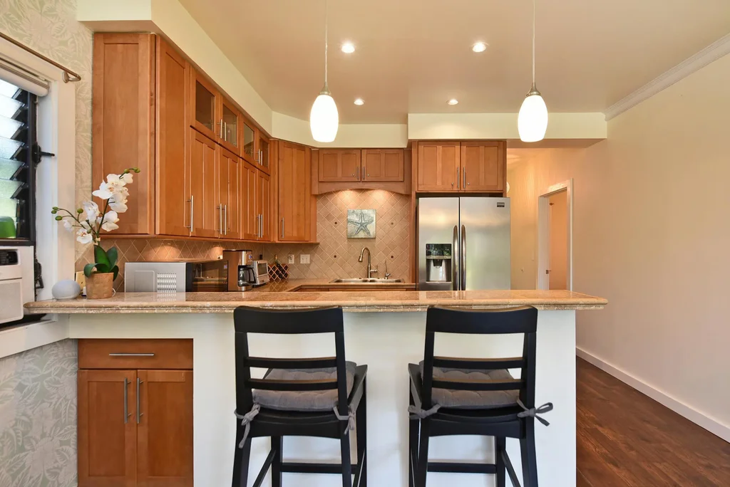 Ground-floor fully remodeled (2022) 2 bedroom condo at Pohailani in popular Kahana. This 2-bedroom, 1-bathroom unit features remodeled kitchen, appliances, bathroom, flooring and is in excellent move-in-ready condition. Unit 152 is ideally situation near one of the 2 pools and BBQs, well-manicured, lush landscaping, and is a short distance to the oceanfront BBQ area with ocean access. There are many close-by amenities including restaurants, shopping, gym, proximity to public ocean access, and is located between between the world-class resorts of Kaanapali and Kapalua.