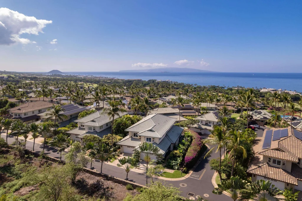 The one you've been waiting for! Prominently situated in one of Wailea's most highly-desired resort-style communities is the Designer Suite at Kai Malu, Wailea. Fully renovated in 2021, the residence boasts impressive sweeping ocean views from every North & West facing window in the home. To the East, one can enjoy the stunning scenery of Mount Haleakala and the green-grass fairways of the Wailea Blue Golf Course. Defined by its perfect blend of modern tropical allure and wood accent, this high-end, well-appointed end-unit encompasses 1800 SF of interior living space, featuring three bedrooms and three bathrooms and an additional 830 SF of private lanais, and an attached garage with abundant storage. As you enter, you'll feel welcomed by the open and light-filled living area, showcasing natural travertine stone flooring that flows seamlessly into the generously appointed gourmet kitchen, with high-end Decor, stainless steel appliances, and ample granite waterfalled countertops with bar seating. Other upgrades include Level 4 drywall, LED ambient, cove & art lighting, designer light fixtures, LVP Plank Flooring, upper level, and custom spa bathrooms with Bianco and Nero Marquina Marble and showers. The list continues with custom California Closets, Designer fixtures & finishes, epoxy garage flooring, and more! Take a few steps onto the private Lanai, and immediately, you are immersed in the tropical gardens while enjoying the incredible ocean views. Perfect for sunbathing, sunset cocktails, or an alfresco meal with friends & family. Ideally positioned, the home enjoys luxury, resort-style amenities, including one of the most impressive pools throughout the entire Wailea Resort. The Pavillions features a stunning 75-foot infinity-edge pool that looks out West to the island of Lanai. A spa, sauna, and BBQ Pavillion round off the community center while meandering walking paths throughout the community provide beautiful walks with the Dog! The Wailea Blue course surrounds the gated community, and homes are situated along view corridors to maximize every home's view, ambiance, and privacy. Kai Malu at Wailea affords owners the feeling and privacy of a stand-alone residence while at the same time providing the ease of condominium living. In addition, the "Designer Suite" is offered Turnkey Designer Furnished with Housewares for comfort and ease.