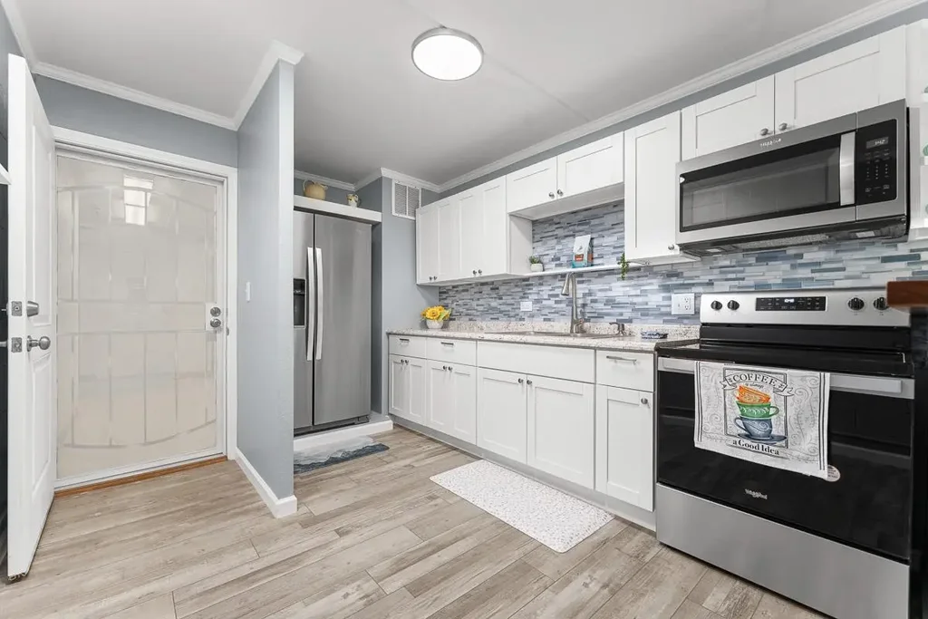 The 2 bedroom 1.5 bath unit has undergone a complete and luxurious renovation from top to bottom, featuring a modern and sophisticated design. You'll be impressed by the stunning Lifeproof vinyl plank flooring that runs throughout the space, as well as the crown molding that delicately kisses the freshly painted walls and ceiling. The unit is flooded with natural light thanks to the large vinyl windows, which beautifully accentuate every detail of the condo's upgrades. The butcher block bar countertops and white soft-close cabinets make cooking a breeze, while the all-new appliances make meal prep a joy. You can also relax in the spa-like experience of the tiled walk-in shower, which features smart technology including Bluetooth-enabled speakers, a bathroom vent, and night light. The complex has a playground, basketball court, and a private pool surrounded by colorful gardens and a tranquil koi pond. Plus, you're just moments away from the harbor and near some of the most popular local surf spots, as well as medical facilities, schools, and delicious restaurants. It's worth noting that this stunning unit is a ground floor corner unit within the complex with convenient access to your assigned parking stall just a stone's throw away. Enjoy the added privacy and quiet that comes with being tucked away in your own little corner of Harbor Lights.