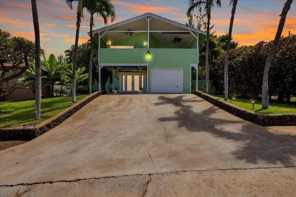 Beautiful split level family home in the desirable Keonekai neighborhood with wonderful views of the ocean and the West Maui mountains. The upper level consists of the primary bedroom and bath with oversized tiled shower, large vanity, walk in closet, new luxury vinyl flooring and powder room. The vaulted 12’ ceilings throughout the upper level offer an expansive feel. Updated kitchen cabinets, granite counter tops. Large lanai off the kitchen, living area is perfect for outdoor dining and entertaining. The 2 additional guestrooms and full bath are on the lower level with access to the large, private fenced yard. The 2 car garage has been split into a single car garage/storage area with the 2nd half being used as a finished family room. Upgrades in the past couple years include exterior paint, new screens, new trim and interior doors, new fans, whole house fan, 4 split AC units, new solar hot water heater, new closet organizers throughout, new appliances, fixtures, luxury vinyl, and more!