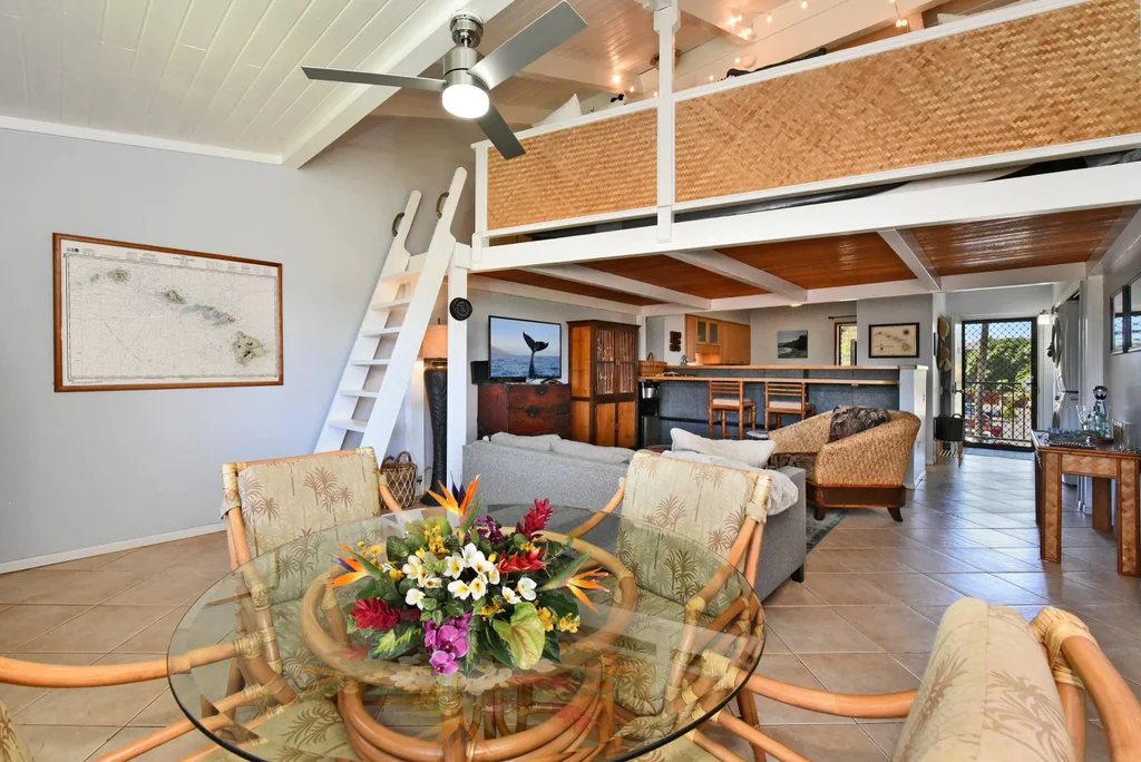 Welcome to Hale Royale! This cozy 1 bedroom 2 bath 2nd floor condo has a large loft that can sleep 4. It's one of only 4 units in the complex that sits over a breezeway and has 3 feet extra width in the living room and kitchen. Stainless steel appliances, tile and laminate floors, full sized washer and dryer, new dishwasher, new ceiling fan, new water heater, new "cat" screens. This unit is being sold turnkey including towels, linens and kitchenware. Hale Royale is close to shopping and dining, across the street from the beach and steps to the Farmers Market. Unique complex that does not allow vacation rentals. Beautifully maintained grounds, 2 pools, hot tub and sauna - Hale Royale has it all. Complex allows indoor cats.