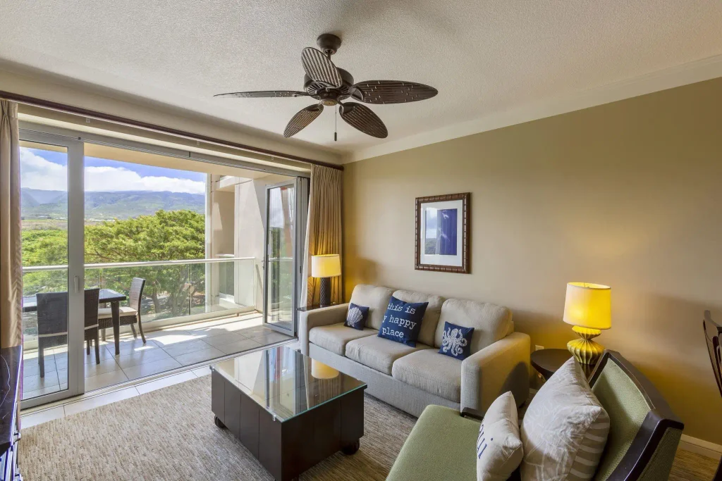 Optimally priced as the best valued one bedroom one-bath with dining area, pull out sleeper sofa in living room, and private balcony to experience majestic sunrises. This ideal vacation rental faces east giving all occupants the experience of waking up to the rising sun and having cool afternoons shielded from the relentless sun. Easy access to the main lobby, island activities, Kaanapali boardwalk, and famed Dukes oceanfront restaurant. Ideal for guests and owners, Hokulani 424 has a welcoming floor plan with views of Mount Kahalawai, which means "holding house of water," and is approximately 1.7 million years old. Daydream with the tropical palms and peaceful banyan tree canopies from this home. Granite countertops, full kitchen, owners’ closet, pull out sofa sleeper, central a/c, Bosch ensuite washer/dryer and appliances. Folding glass walls offer the ultimate indoor outdoor living experience. Access to the Ka'anapali beach boardwalk, coffee shops, restaurants, farmers market, dive shop, and the grocery store. Bask on the shores or jump in and enjoy the blue sea. Honua Kai's luxury amenities include: one-of-a-kind aquatic playground, Beachfront dining at Dukes Restaurant, Aina Gourmet Café, Whaler’s General Store, Ho ’ola Spa, fitness center, valet, and security services. This unit participates in a highly successful vacation rental program. Ideal choice for savvy 1031 Exchange buyers.