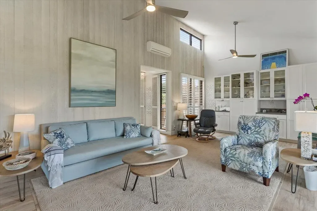 Wailea Ekahi Unit 40D is a turn key 1 bedroom, 2 bath condominium situated on the second floor with beautiful garden views. This fully remodeled unit offers the perfect balance of luxury and tranquility. Upon entering the unit, you will be greeted by an open and spacious floor plan, with vaulted ceilings and sixteen windows that allow the natural light and ocean breezes in. Renovated in 2021, this stunning unit boasts elegant and modern upgrades throughout including six ceiling fans, quartz countertops, eight foot cabinets with soft close, roll-out drawers and a full-size washer and dryer. Both bathrooms have been completely remodeled with high quality fixtures providing a spa-like experience. Enjoy the palm trees and sunsets from the lanai off of the living room or bedroom. This unit has been the owner's private residence, but can be used as a vacation rental or second home. Wailea Ekahi features a variety of amenities including the recently renovated pool and beach front pavilion in addition to three other pools, beautiful landscaped gardens and easy access to Wailea's world class restaurants, shopping, golf, tennis and beaches.
