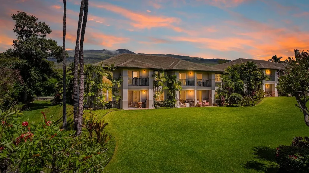 Beautifully remodeled OCEAN VIEW townhouse corner unit at Wailea Fairway Villas. Extremely private nestled up to lush greenery. Gentle cross breezes. All new porcelain plank tile flooring in beach wood tones, gorgeous custom walnut cabinetry throughout, professionally remodeled kitchens and baths, chunky Taj Mahal quartzite countertops, stainless appliances, 4 unit split system AC cleverly concealed, downstairs guest bed and bathroom in addition to the primary and secondary bed and bathroom upstairs including additional office space. Ultra short throw Optoma projector and retractable hidden movie screen. This was a $400,000 renovation exquisitely executed. Closets were moved to allow for a massive double primary shower. Second floor guest bedroom was reconfigured to create a private ensuite bathroom. Built in custom walnut Murphy bed. No stone was unturned. All woodworking, doors and windows are new (2023). Truly an astounding renovation. Pictures cannot convey the depth of detail in this renovation. Sophisticated luxury.