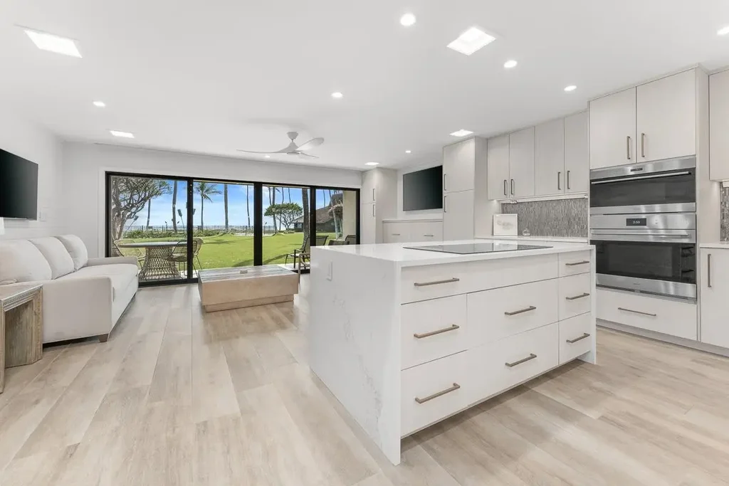 This unit is truly turnkey! A complete $300K remodel was done in 2021 and no expense was spared. Luxury sub-zero and Wolf appliances, built in wine refrigerator, Fleetwood sliders and windows, split AC and the unit is fully insulated for additional sound barrier. These are just a few of the many features that make this unit standout. The interior is a showcase in quality, workmanship and aesthetics! Ma'alaea Surf Resort is a low density complex that sits on beautiful Sugar Beach with only 59 units in eight buildings over 5 acres. True oceanfront living within steps to the beach. Resort amenities include 2 pools, 2 BBQ areas, shuffleboard and newly renovated recreation area that includes tennis courts, pickleball and basketball. The AOAO recently replaced all the cast iron piping in all the units. Experience this hidden gem in N. Kihei!