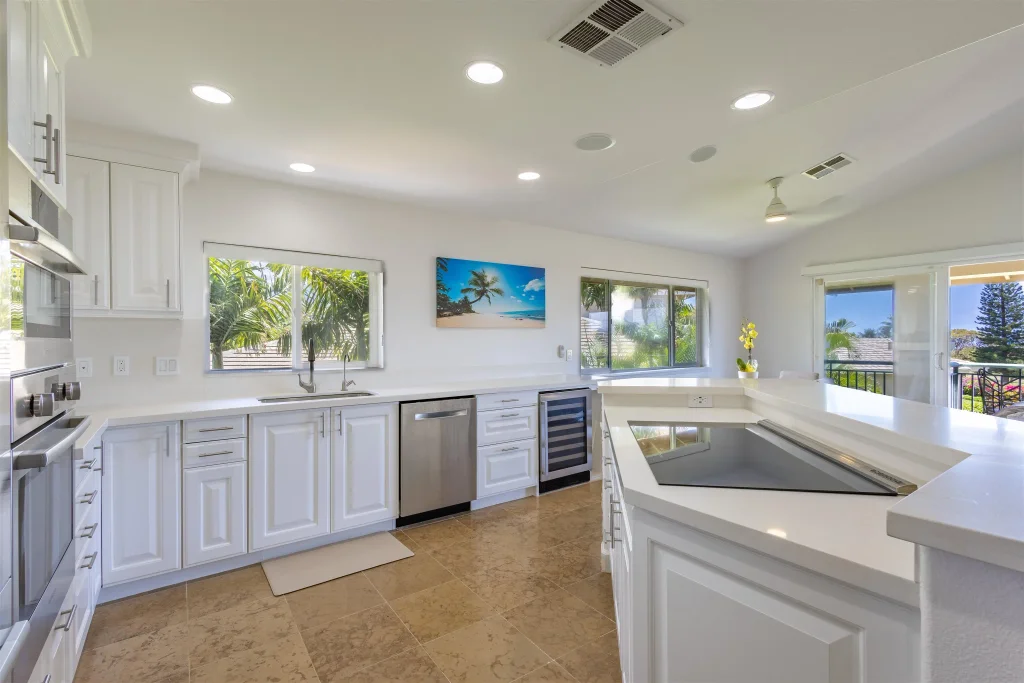 Easy to show. Vintage Residence 4 is a fully remodeled free standing luxury home located within the Kaanapali Resort Community. Residence 4 is the highest quality and most private Vintage Residence ever offered. The home is secured behind the Gates of The Vintage and perched above the 10th tee box of The Kaanapali Kai Golf Course. Situated southwest the view perspective overlooks the Kaanapali Resort with year-round sunsets, seasonal whaler watching and Pacific Ocean and outer island panoramas in the backdrop. The open and bright kitchen features custom everything with built in appliances, including Miele and Bosch, a large 6-seat bar and a wine cooler. The living room features vaulted ceilings, stunning West Maui Mountain and ocean views as well as a large covered outdoor deck. The master bedroom features a double door entry with a walk in closet and private, covered ocean view deck. The custom master bathroom is complete with floor to ceiling Spanish porcelain tile, free standing jet bathtub, custom floating vanity and curb-less 3-head shower. The two guest bedrooms and full guest bathroom are downstairs along with the laundry room, closets, garage and front entry. Each of the guest bedrooms offer large private covered decks. Over 3,000sqft under roof. The 2022 remodel took nearly a year to complete and includes a brand-new Bosch central air conditioning and central vacuum system in addition to a fully finished garage. Residence 4 is fitted with Hunter Douglas window treatment, matching Kohler fixtures throughout and complete indoor and outdoor state of the art sound system in every room, including the garage. The grounds and entry are meticulously maintained and have been enhanced to the fullest including lush landscaping with flowers and privacy hedges, making for a tranquil outdoor setting. The Vintage is a short golf cart ride to world-famous Kaanapali Beach and Whalers Village. Community amenities include private pool, hot tub, barbecues, full kitchen, and fitness center. The Vintage association offers hassle-free homeownership and maintains landscaping, pool, spa and roads, along with exterior painting and roofing. This home can be purchased fully furnished, Jaguar not included. Listor is Owner.
