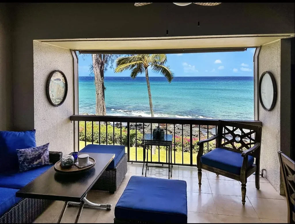 Enter the world of Oceanfront Resort Lifestyle. This is a very rare opportunity for a gorgeous 1 B/1.5 B unit showcasing panoramic ocean views. These units don't come up for sale very much and they are preferred by owners that use them for their exclusive use in a quiet resort environment. Enjoy spectacular sunsets year round, and relax with the sound of ocean waves. No need to go on a boat to watch whales! Observe whales and dolphins from your oceanfront lanai. Fantastic place for sunset gatherings and daily turtle sightings. This unit has beautiful granite countertops, hardwood flooring, a great walk-in closet and elegant built-in alcoves for your unique decor treasures. The property has a kidney-shaped pool and hot tub area with BBQ grill, showers and restrooms, workout room and a library. It also comes with additional storage in a secure locked area and the property itself is gated. There are also surfboard/kayak storage spaces available for approx. $300/year. No short term rentals allowed (minimum of 180 day stay required). It is a very sought after location due to proximity to shopping, dining, golf and airport. Unit is sold fully furnished (excluding a wood cabinet and all artwork and decor items). Full list of furnishings included will be provided in escrow. Monthly fees:$ 948.64 (maintenance)+$ 368.05 (reserves)+$ 345.86 (special assessment) for a total of$ 1,662.55. Owner is a licensed real estate agent in Hawaii. Comes with assigned parking stall #4 and on-property storage room #13.