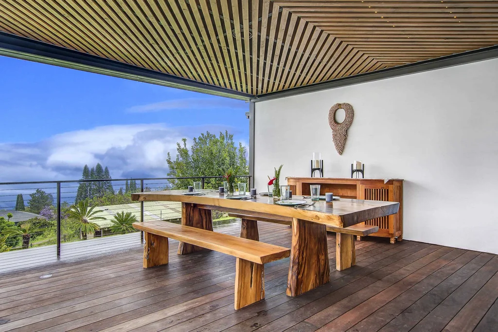 Welcome to your own piece of paradise in Maui's beautiful Kula district! This exclusive, gated property offers breathtaking bicoastal views from every angle. The main home boasts 4 spacious bedrooms and 4 beautifully appointed bathrooms. The primary bathroom is a true oasis with heated floors and it takes you out to an outdoor soaking tub that overlooks the stunning vistas. You will stay comfortable all year-round with central heat and central air. Step outside to enjoy the perfect Maui weather in the pool and hot tub, surrounded by lush landscaping and a covered dining area for sunset dinners. Take advantage of the property's fruit trees, including avocados and citrus, for fresh local produce right from your back yard. In addition to the main home this property includes a 2 bedroom 2 bathroom cottage and a flexible ensuite perfect for guests or rental income.The 3 car garage has endless possibilities for a home gym, office, or additional open space up above. There is a 3/4" water meter and is zoned Rural .5 acre.