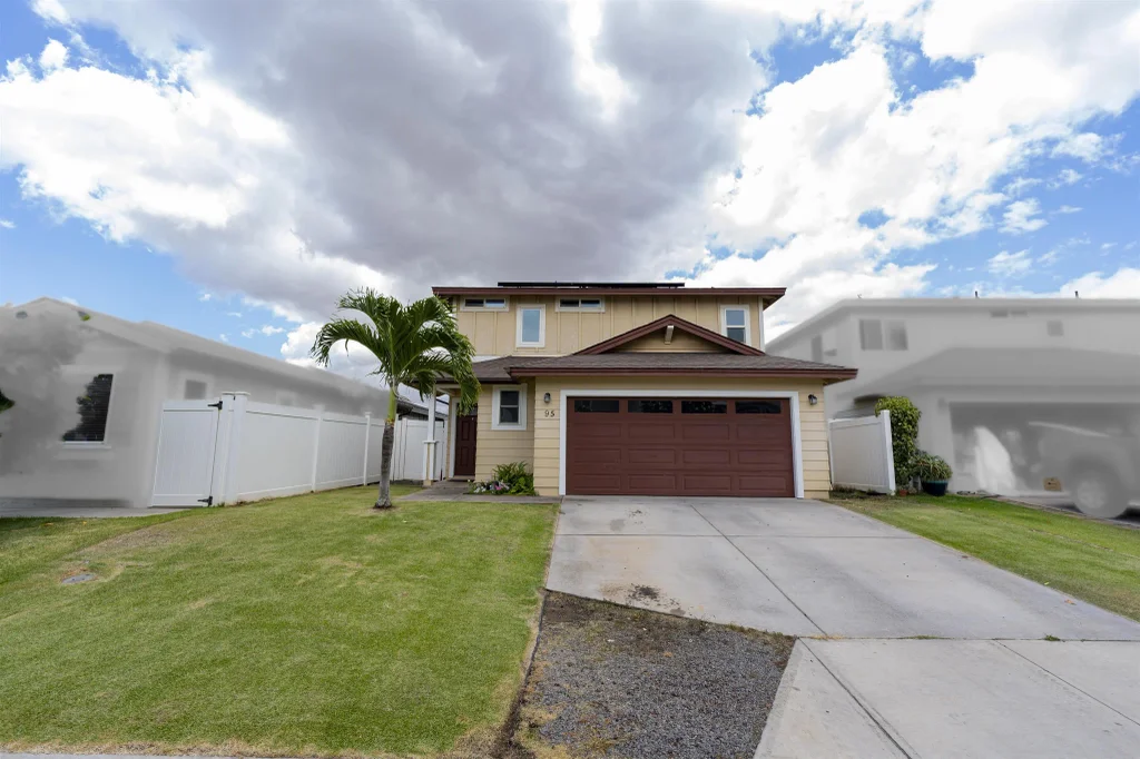 Maui Lani Traditions is a community that is right across from Pomaika'i Elementary School, walking distance to Central regional park, and has its own park with water features for young children. This is a 2 story home with its own drive way and beautiful views of Haleakala from the kitchen, living room, and 2 of the 3 bedrooms. Two side entries to a private enclosed back yard. 4 split A/c units in the home, 9 solar panels, and recently installed flooring on the first floor.