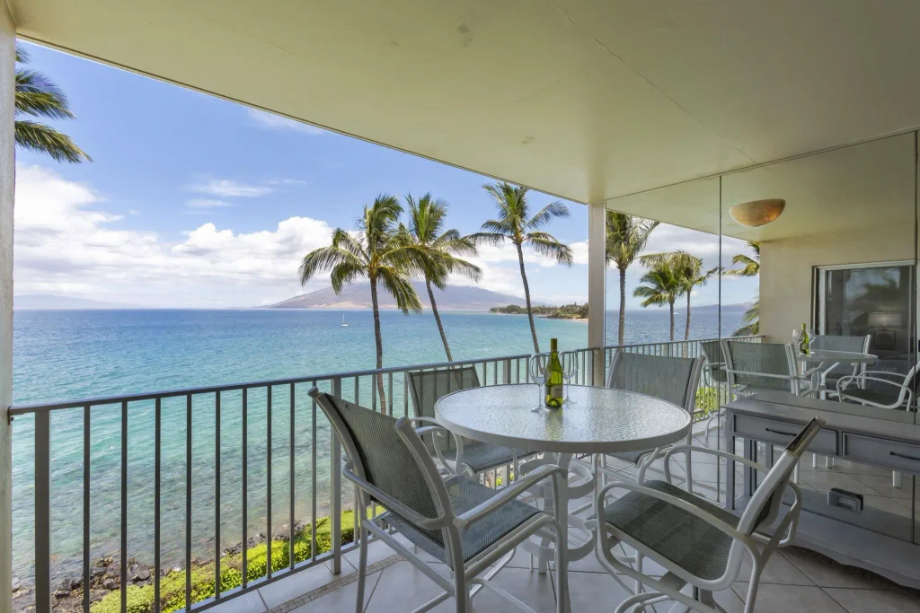 Welcome to Royal Mauian 512 - a rare gem in the heart of Kihei, Maui! This stunning oceanfront 2 bed/2 bath unit is one of only a few in the complex with no stairs, and boasts the most incredible breathtaking 180 degree ocean views. Enjoy amazing sunsets and whale watching from the best location at Royal Mauian. Its beautifully upgraded features include beveled granite counters, a SubZero refrigerator, GE Profile stove, GE oven/microwave, and a Bosch dishwasher. The bonus pocket doors for both the master and 2nd bedroom brilliantly create their own suites. The unit also comes equipped with a 3-zone mini-split AC system, newly installed in 2020 to keep you cool and comfortable year-round. Sold turnkey with high-end furnishings, this unit is perfect for anyone looking for a highly desirable vacation rental property or a home away from home. Located adjacent to Kamaole Beach 1, you're just steps away from the sand and surf. With a high walk score and a plethora of restaurants and stores within walking distance, this unit truly has it all. Don't miss your chance to own a piece of paradise - schedule your showing today!