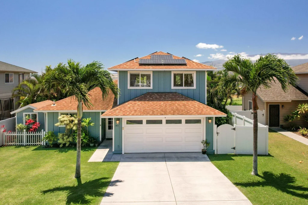 Check out the views of North shore while relaxing on your private lanai in lovely Waikapu Gardens! This premium location is right on the park and walking trail! How convenient! Talk about a wonderful floor plan, the Primary bedroom and office are located downstairs! The upstairs features 2 bedrooms, bath, and large family room for spacious living. Owned PV system keeps electric bill low. Central AC upstairs as well as split system downstairs in the living room, keeps you super cool! Stainless steel appliances, beautiful landscaping and an outdoor bonus shed perfect for yoga, hobbies, private office or you name it! Enjoy gorgeous sunsets, sunrises and views of the majestic West Maui Mountains! Located close to Wailuku town, schools, hospital, dinning, golf and beaches!