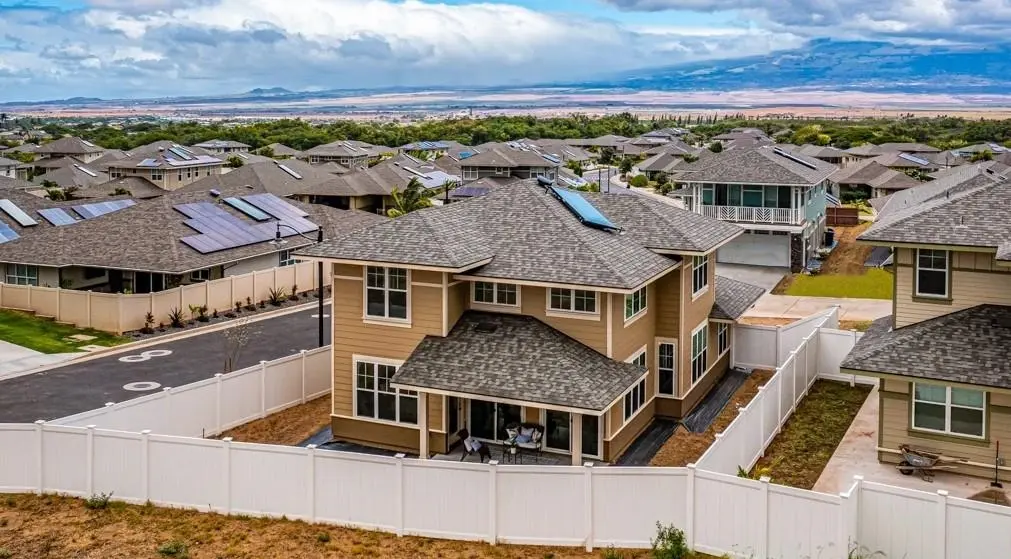 Located within the highly sought-after new community, The Parkways at Maui Lani, 189 Kuena Lane is a warm and welcoming 2,227 sq. ft, 3-bedroom, 2.5-bath home, complete with a loft and soaring 20-foot ceilings in the home's central Great Room. This brand-new home brings together clean design, in-demand features, and a convenient location close to recreation, restaurants, and services. Each home in The Maui Lani Master Planned Community has been carefully curated to reflect uncompromising quality and style. 189 Kuena Lane boasts lofty 9-foot ceilings and custom-crafted 8-foot doors. 189 Kuena Lane is a corner lot, and the home is built along the Ko'olina layout. The residence is thoughtfully designed with abundant windows, flooding the interior with natural light and enhancing the ambiance of every space. On the first level, you will find the Great Room with a kitchen with high-quality wood cabinets and Corian countertops. A large kitchen island is functional and decorative. The home's Primary Bedroom Suite is located on the first level. The suite boasts a spacious bedroom, a walk-in closet, and a sleek bathroom featuring dual vanities, a soaking tub, and a walk-in shower. On the upper level, a roomy loft space looks down on the Great Room. In addition, two guest rooms and a full bathroom are located upstairs. 189 Kuena Lane also features premium carpeting, luxury flooring, and porcelain tile throughout the home. Outside, covered lanai spaces and a fully fenced yard provide the perfect setting for outdoor gatherings or simple relaxation. The construction includes conveniences such as interior laundry rooms, full insulation, hot water heaters, and meticulously finished garages. The Parkways at Maui Lani resides gracefully along the verdant fairways of the Dunes at Maui Lani Golf Course. The community is located near schools, places of worship, and shopping destinations. It offers a wide range of exceptional amenities, from community parks and walking trails to recreational facilities and social gathering spaces. Your new Maui life awaits at 189 Kuena Lane, a beautiful new home and community.