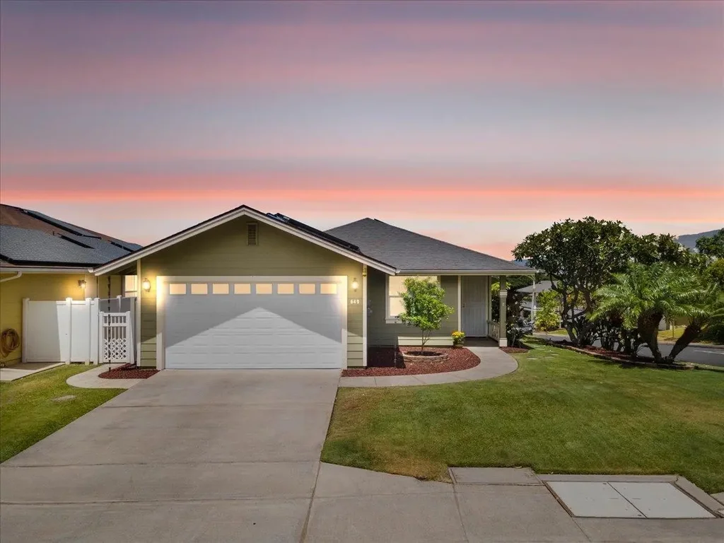 MOVE IN READY! 649 Komo Ohia St is a beautiful 3 bedroom/2 full bath single story renovated home in the Ohia subdivision of the highly desirable master planned community of Kehalani. This centrally located home is within a half mile of Pu’u Kukui Elementary School, within ten minutes of shopping, beaches, hospitals, and within close proximity to the community walking/bicycling path and parks. Enjoy the benefits of a corner lot that comes with privacy along with views of both the West Maui Mountains and Haleakala from your backyard. There is a large two car garage, fully fenced and gated yard, and landscaping with irrigation. The extended lanais provide a peaceful outdoor living space that is easy to maintain. Fruit and plumeria trees offer seasonal treats. Rain gutters all around the house. The open floor plan with cathedral ceilings makes the house feel spacious. There is central AC throughout the home. Updates from current owner include beautiful luxury laminate flooring, solar water heater and panels, 18 owned photovoltaic panels with battery backup, central air conditioning unit, all appliances replaced including washer and dryer, kitchen appliances, and fresh paint. Clean and easy to show.