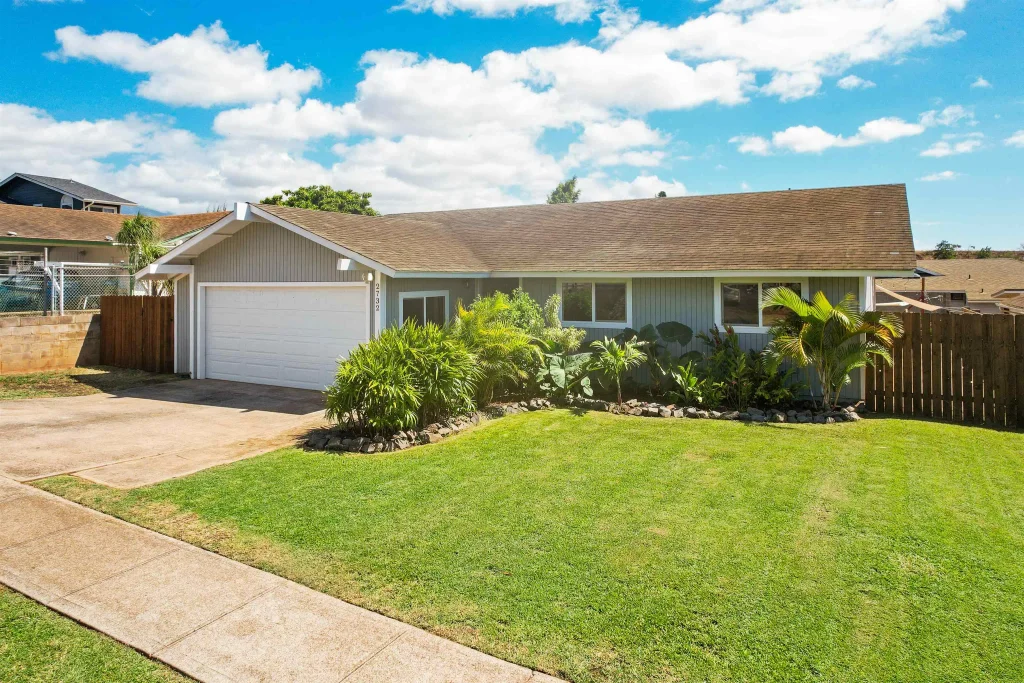 Aloha & Welcome to this charming single-story home in the wonderful community of Pukalani, Maui, Hawaii! This fantastic house features 3 bedrooms & 2 bathrooms, along with an open layout that seamlessly connects the living, dining, and kitchen areas, creating a spacious atmosphere perfect for entertaining guests or enjoying quality time. The well-appointed kitchen boasts modern appliances, ample counter space, and plenty of storage, making meal preparation a breeze. The primary bedroom includes an ensuite bathroom, providing privacy and convenience. And both bathrooms were recently fully remodeled, creating lovely light & bright spaces. You'll find finished concrete flooring throughout the house, as well as a spacious 2 car garage and Photovoltaic Solar Panels on the roof, providing Eco Friendly means of electricity. Step outside to discover a well-maintained fenced in yard, that offers a serene setting to host gatherings, or simply enjoy the fresh Maui air. Embrace the island lifestyle as you can either leisurely lounge in a hammock, tend to a garden, enjoy an outdoor movie or create an awesome backyard bbq. Located Upcountry, this home offers convenient access to local schools, shops, restaurants, and recreational facilities. Pukalani Golf Course is just a 'pitching wedge' away. And its just a short 20 min drive down the hill to the airport, Costco or Target. Don't miss out on the opportunity to own this lovely single-story home in Pukalani, Maui. Reach out to your favorite local Maui realtor to schedule a private showing and experience all the joys this property has to offer!