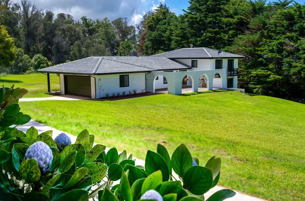 Nestled in the embrace of the fragrant Eucalyptus Waihou Spring Forest Reserve, this extraordinary abode offers the epitome of privacy and tranquility. Embodying the spirit of Modern Farm House architecture, this home draws inspiration from Maui's unique climate and style, creating a harmonious blend of contemporary design and natural beauty. Sprawling across nearly 2600 square feet and ensconced within a generous expanse of 2 acres, this masterpiece boasts an impressive 5 bedrooms and 3.5 bathrooms. The tri-split level layout, a hallmark of ingenuity, provides an ideal setting for harmonious living. The open concept design seamlessly flows, inviting gatherings and fostering connections. Step inside and be captivated by the classic forever-wood-like flooring, a perfect complement to the clean palette of whites, grays, and blacks that grace the interiors. The allure of white shiplap detailing creates a tactile delight, adding texture to the 2 chic fireplaces that serve as focal points of elegance. The kitchen, adorned with natural granite slabs, is a culinary haven where meal and party endeavors are transformed into art. This home is equipped with a rare, house generator with an automatic transfer switch, 120-gallon water heater and a surround-sound system on the main floor, catering to modern comfort and entertainment. A symphony of colors and scents awaits outdoors, as mature Hawaiian tropicals, including Birds of Paradise, Gingers, and King Protea, create a vibrant canvas against the backdrop of lush greenery. Positioned perfectly in a sunny park-like setting, surrounded by beautiful trees, ensuring a connection to the land. The tri-split level design is a boon for large families seeking individual sanctuaries, making coexistence a seamless and harmonious experience including the ability to build a barn. Just a mere 11 minute journey will transport you to the quaint town of Makawao, where sumptuous eateries and creative shopping experiences converge. The nearby schools and abundant hiking trails promise a lifestyle brimming with possibilities. Immerse yourself in the luxury of 4 generous lanais, each an oasis of relaxation and contemplation. Cultivate your own vegetable garden, and delight in the presence of adorable goats who share in the enchantment of this retreat. An upscale chicken house stands ready to provide you with farm-fresh eggs, a testament to the self-sufficiency this home affords.