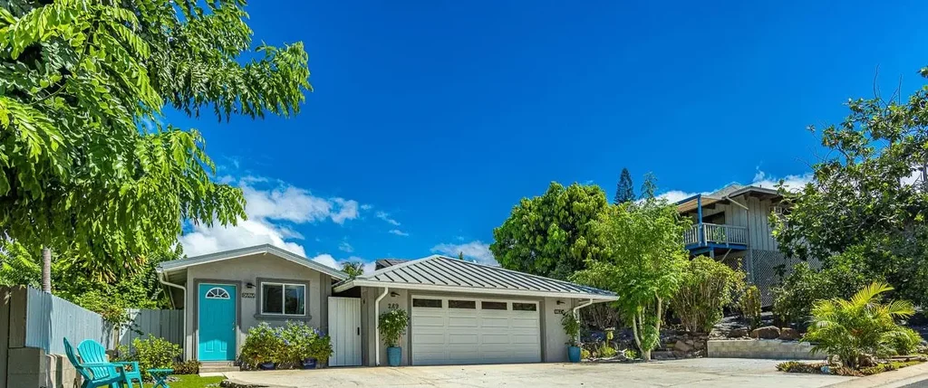 This lovely residence, tastefully renovated in 2019 & exuding character, & separate Ohana, built in 2020, are situated on a quiet South Maui street close to Kihei’s pristine beaches, parks, & almost every imaginable resort amenity. The soft gray, dual-toned, stucco exterior & muted standing seam metal roof speak 'clean & modern!' Glistening warm-tone engineered wood floors throughout complement the abundant presence of natural stone & wood surfaces. The open spacious kitchen & main living area blend seamlessly & are a lovely gathering place to create culinary delights while still being part of the collective conversation. Honey-toned maple cabinets & the natural stone full-height backsplash lend a homey, warm feeling while contrasting with the all-stainless steel appliances. The light-filled Primary Suite enjoys direct access to the lushly landscaped back yard & its en-suite bath features dual scallop-edged designer sinks plus Mocha travertine countertops, floors, & tub-to-ceiling stone walls. All three bedrooms have beveled mirror-glass closet sliders. Bathroom Two boasts floor-to-chair-rail travertine walls & a custom stone & glass shower. The generous 8261 s.f manicured lot offers a variety of intimate outdoor environments, including a hexagonal gazebo, possibly room for a pool, & a readied pad for a hot tub! The equally lovely 608 s.f., 1 Bedroom, 1 Bathroom contemporary Ohana features off-street parking for 2 cars, & enjoys private front & rear entrances! There are also owned photovoltaic panels. Pride of ownership is evident!
