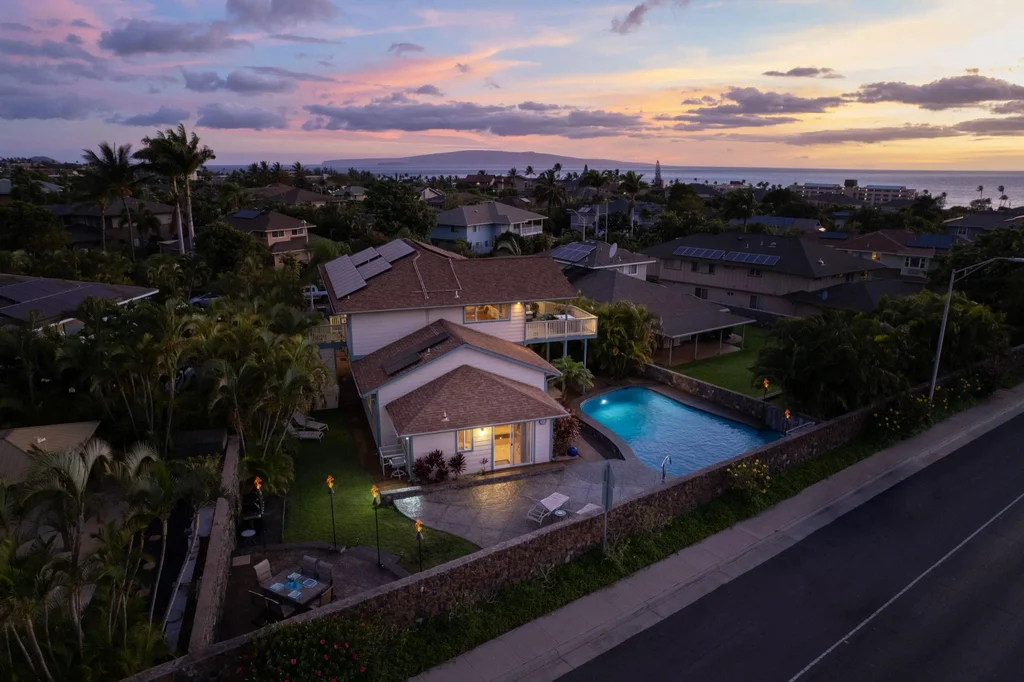 Wow - what a house! Located in the highly sought-after Kamaole Heights subdivision, this property has sweeping views, vaulted ceilings, an open concept living with 3 bedrooms, 2 baths, and central AC upstairs -- plus a tropical pool with multiple entertaining areas, an attached ohana and a recently converted additional living area downstairs. Did we mention 54 PV panels? Stunning views of the West Maui mountains, expansive sky, and ocean blue enhance the craftsman construction. Eucalyptus hardwood floors, custom tile, and granite finishes upgrade this to a dream home. The pool's waterfall, tiki torches, and huge stamped concrete patio create a modern oasis. The attached 2 bedroom Ohana has exposed beam ceilings and tons of beach charm. The huge downstairs contemporary living area now offers friends or extended family a bedroom, office, bath, and kitchen. Fully irrigated mature landscaping showcases Queen palms, lava rock walls, lawn, and Areca palms for privacy. Located close to Kamaole Beach Park 1 and several Kihei schools, this home is the epitome of the South Maui lifestyle and comes complete with an outdoor shower for post-beach cleanup, a 2-car garage, plenty of outdoor parking, and ample storage for outdoor sports equipment.