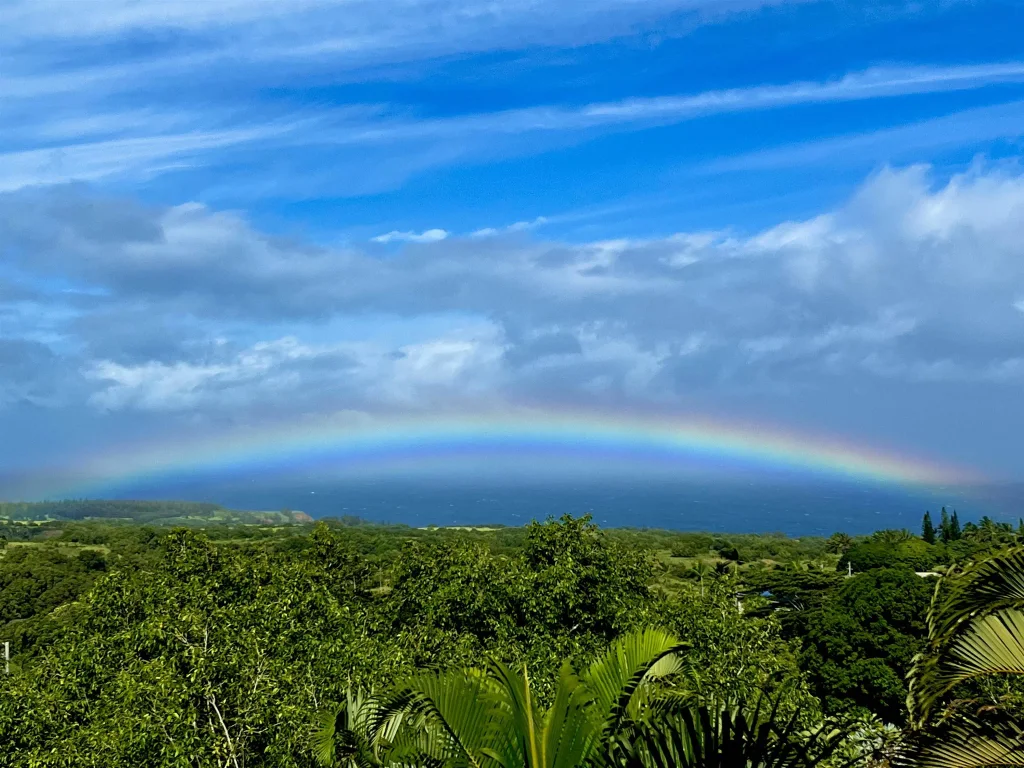 VIEWS VIEWS VIEWS…As soon as you walk into this beautifully designed 3 bdrm, 3.5 bath, 3450 Sq. Ft., private Modern Plantation home, with solid maple and pine wood floors, you will be immediately drawn to the expansive ocean coastline views. Facing west, this Ocean side of Hana Hwy. property has unreal vistas of the West Maui Mountains, Haleakala Crater and Molokai Island with hundreds of acres of land in the foreground that gives you a sense of privacy and country. The magical sunsets lure you to contemplate the end of the day on one of the two leeward covered lanais. The large Great Room with its high vaulted ceilings makes the living room and spacious kitchen, with granite counters, huge island and dining area a wonderful place to gather. The primary bedroom with ensuite travertine bath and Jacuzzi tub, has it’s own private backyard. The lower level has an approximately 550 sq.ft. bonus room with a separate entrance. A perfect ocean view room for family, exercise/art studio, office…whatever you can imagine. The generously sized 3rd Ensuite Bedroom has access to the lower back yard and patio, awesome for guests or family. Mature palms (ceiling wax among the different varieties) and fruit trees add to the Hawaiian ambiance. There is a cottage pad ready to build with all utilities at the site. High speed fiber-optic internet cable is installed in the house! This 2 acre property and home has a graceful energy. Come feel the tranquility and beauty. One of the Sellers is a licensed realtor in the State of Hawaii.