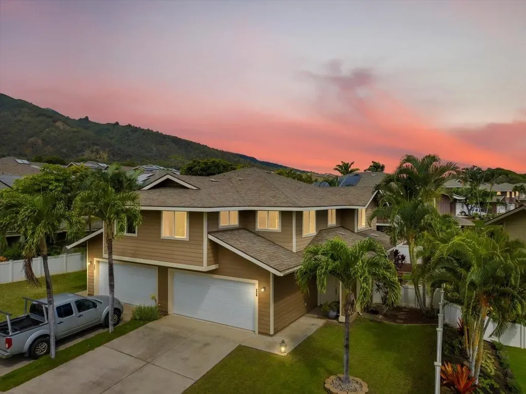 Welcome home to Milo Court! Situated directly across the street from the Kehalani Community Park green-space, this 3 bed, 2.5 bath town home has stunning views from Haleakala to the West Maui Mountains. Boasting 1,457 square feet, this two story home has functional flow and many wonderful bonus features. The first floor offers an open living/dining room space with split system air conditioning that seamlessly leads to a fenced backyard, half-bathroom, under-stair storage closet and finished garage space with non-slip epoxy floors. The spacious kitchen features granite countertops and upgraded LG appliances. All three bedrooms and the laundry nook are thoughtfully placed on the upper level. The premier suite has a vaulted ceiling, split a/c, a large walk-in closet and an en-suite bathroom with dual sinks & a beautifully tiled walk-in shower. Very centrally located in the heart of Wailuku, you'll love the convenience to grocery stores, shopping centers, medical facilities, educational institutions. Call your favorite Realtor to schedule a showing today.