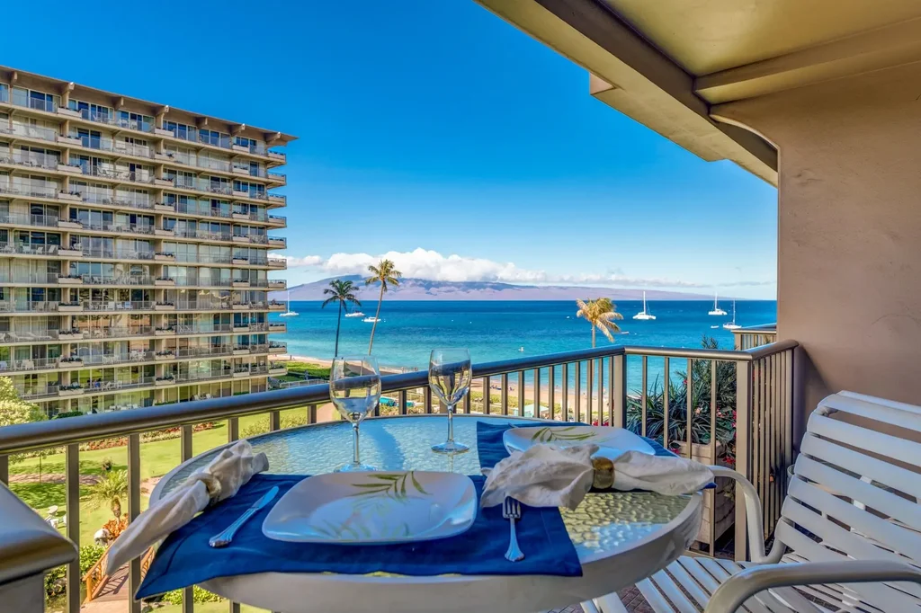 Fifth Floor courtyard facing Studio unit located on the sunny, south side in The Whaler Tower One offering dramatic views of world famous Kaanapali Beach and sunset views overlooking tropical landscaped center courtyard. Enjoy the quality and comfort with a nicely appointed granite countertop and stainless steel appliances. The bathroom features a large walk in shower with a custom ocean theme mosaic. Queen size bed and a sofa sleeper can accommodate up to four people. Central A/C and ceiling fans will keep you cool. The Whaler on Kaanapali Beach is situated on the renowned sandy shoreline of Kaanapali Beach. The Whaler features an ocean front pool, massage therapy spa, sauna, health facility, salon, underground parking, and a business hub center.