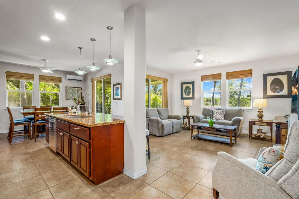 This upstairs, corner unit in the most serene and tranquil part of this wonderful complex lives more like a home than a condo. Tile floors throughout, granite counter tops in the kitchen and bathrooms. Soft-close, cherry-wood cabinetry and new-ish refrigerator and stove in the spacious kitchen. Enjoy your morning coffee as you look over the peaceful garden setting and the backside of Haleakala. The three-way split system AC will keep you cool the whole year round. This unit comes with a rare-for-a-Kihei-condo detached garage in addition to one other assigned parking stall. Kai Ani boasts one of the best pool complexes outside of a resort including covered eating and BBQ area, cabanas and jacuzzi. You really must see this gorgeous unit to fully appreciate.