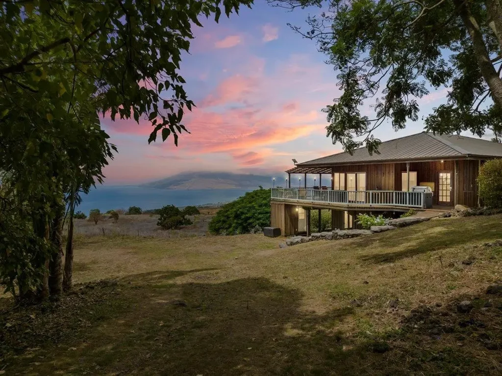Island living with views from coast to coast. Nestled just before the enchanting Ulupalakua Ranch, this extraordinary estate epitomizes unrivaled seclusion, boasting indescribable vistas of the boundless ocean, neighboring islands, and the majestic West Maui mountains- a true embodiment of a private paradise. Encompassing an expansive 7.2 acres of lush land, this property features a stunning 2,478 sq ft main residence with 5 bedrooms and 4 bathrooms, as well as two additional dwellings that offer ample potential for multiple living arrangements or the possibility of additional rental income. Every aspect of this property is graced by natural beauty, with flourishing fruit trees such as mango, avocado, pomegranate, and white sapote, alongside the enchanting presence of blue jacaranda trees. Upon entering the primary residence, you'll be greeted by light-filled interiors framed by high-vaulted ceilings and expansive windows that allow radiant sunlight to flood the space. The main living area seamlessly connects to an open-concept kitchen and extends onto an oversized wrap-around lanai, revealing breathtaking views of the Pacific Ocean. This lanai is the perfect venue for hosting memorable evenings with guests or savoring a pau hana cocktail while admiring Maui's exceptional sunsets. Accessible from the lanai is a spacious and private primary bedroom with soaring ceilings and an en-suite primary bathroom. Completing the main home are 4 additional bedrooms and three bathrooms adorned with tasteful tile accents, all with mesmerizing views. This estate also features a charming redwood cottage with 2 bedrooms and 1 bathroom, as well as a 1-bedroom studio ohana, providing flexibility and convenience. It is also equipped with an electric car charging station and a county water meter. This estate enjoys close proximity to the Maui Winery and Ulupalakua ranch, making it an ideal haven for those seeking complete serenity with stunning views-a true island getaway.