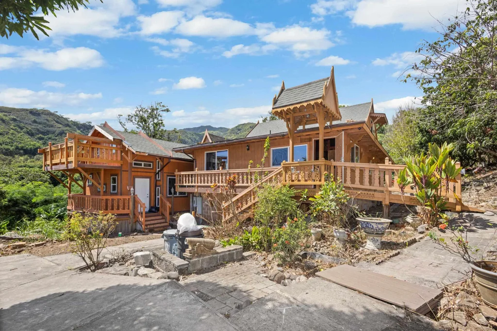 Own a piece of history! This is a unique opportunity to purchase a handcrafted Thai style home with ornate scrollwork and carvings throughout on 12.12 acres with city water, power and access to all utilities including cable in one of the most desirable and historic locations in all of Hawaii. Waihee is the valley where Queen Kaahumanu, wife of Kamehameha the Great, was raised. The valley that, in 1790, fed the armies of Kamehameha the Great and Maui King Kalanikupule as they fought in nearby Iao Valley in the fierce Battle of Kepaniwai. Who are The Four Waters of Maui? Within the song that Alice Namakelua wrote, “The Famous Waters,” are Waikapu, Wailuku, Waiehu, and Waihe'e. They are streams and, due to the great volume of water flowing from mountain to sea, the lands surrounding them were fertile and rich for cultivation. This land is a tropical fruit lovers paradise, sporting a huge grove of mature mango trees including Hagen, Ah Ping, Rapoza and Thai Mango varieties. Dragonfruit abounds, and Papaya, Bananas and Starfruit grow wild throughout the property. The backyard garden also includes several mature lychee and Jackfruit trees that produce heavy crops annually. The main home is a 3 bedroom, 3 full bath 2584 square foot structure with a great room living room, kitchen and dining area, a basement workshop, laundry and storage area, two finished lofts including one with a balcony that features views of the entire valley to the ocean. Off the great room you and your guests can enjoy a covered lanai with built in bench seating that overlooks the river below. You own the entire road from the highway to your back property line but it is maintained by the county because the water station is also on your property. Power, water and utilities are available not only at your house but also anywhere along the road. Your easement grants have allowed others to build below the main road, but you own all the property above the main road to the ridge. This land has at least five other suitable house sites should you wish to develop one or more them in the future, subject to all county permitting and buyers should conduct their own due diligence on the county process prior to initiating any such projects. Owning the upper right side of the valley from the road to the ridge means no one can ever obstruct your views of the valley, the ocean or both from these sites. Two of the potential homesites are located near the spot where your front property line angles toward the top of the ridge. The lower one has a beautiful old Banyan tree in what would be your back yard. The upper one has a sweeping panorama of the entire valley and ocean in a location that no one could ever obstruct. The other three potential home sites are deep in the valley above the existing home, the water station and just above the mango grove. There is also an existing pavilion in this area that is a great place to picnic, barbeque or entertain larger gatherings of friends away from the main home. This is a unique property that must be seen and walked to fully appreciate why you cannot find anything comparable on the market. Post and Pier under home been Paved with concrete floor, 450 sg ft work shop.